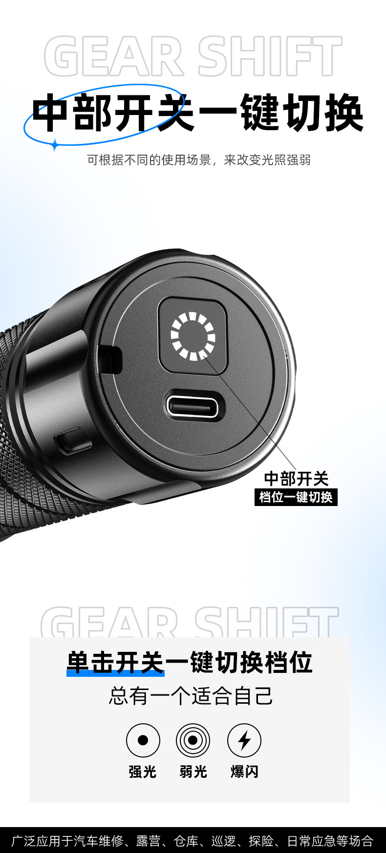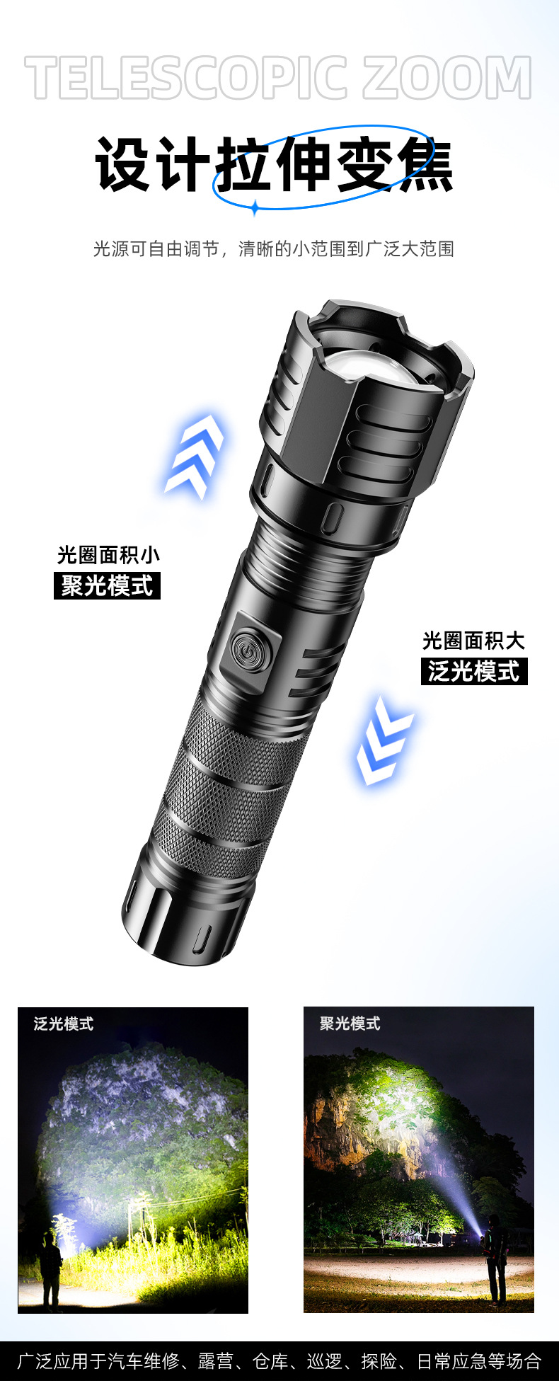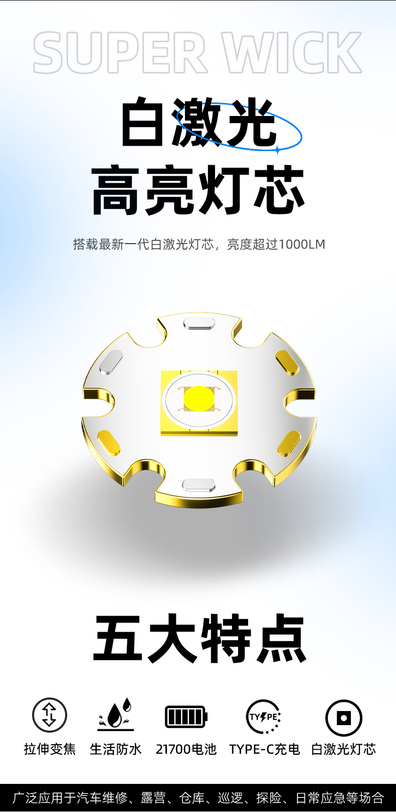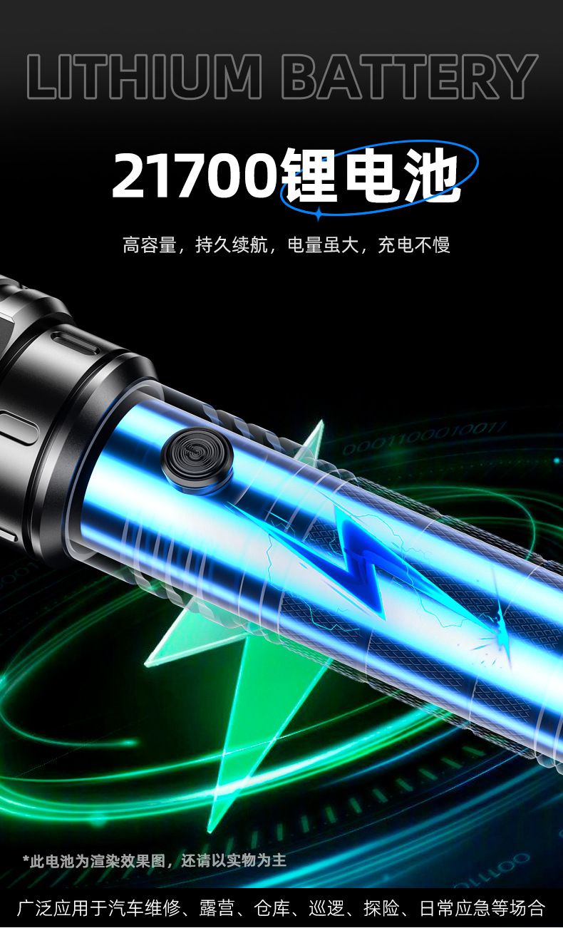 新款白激光手电筒户外长续航可充电变焦远射小钢炮铝合金手电筒