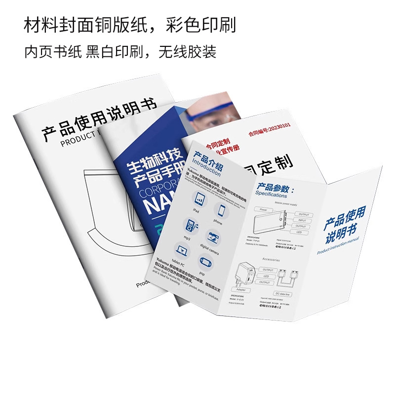 印刷产品说明书企业宣传彩色画册设计骑马钉黑白产品说明书定制