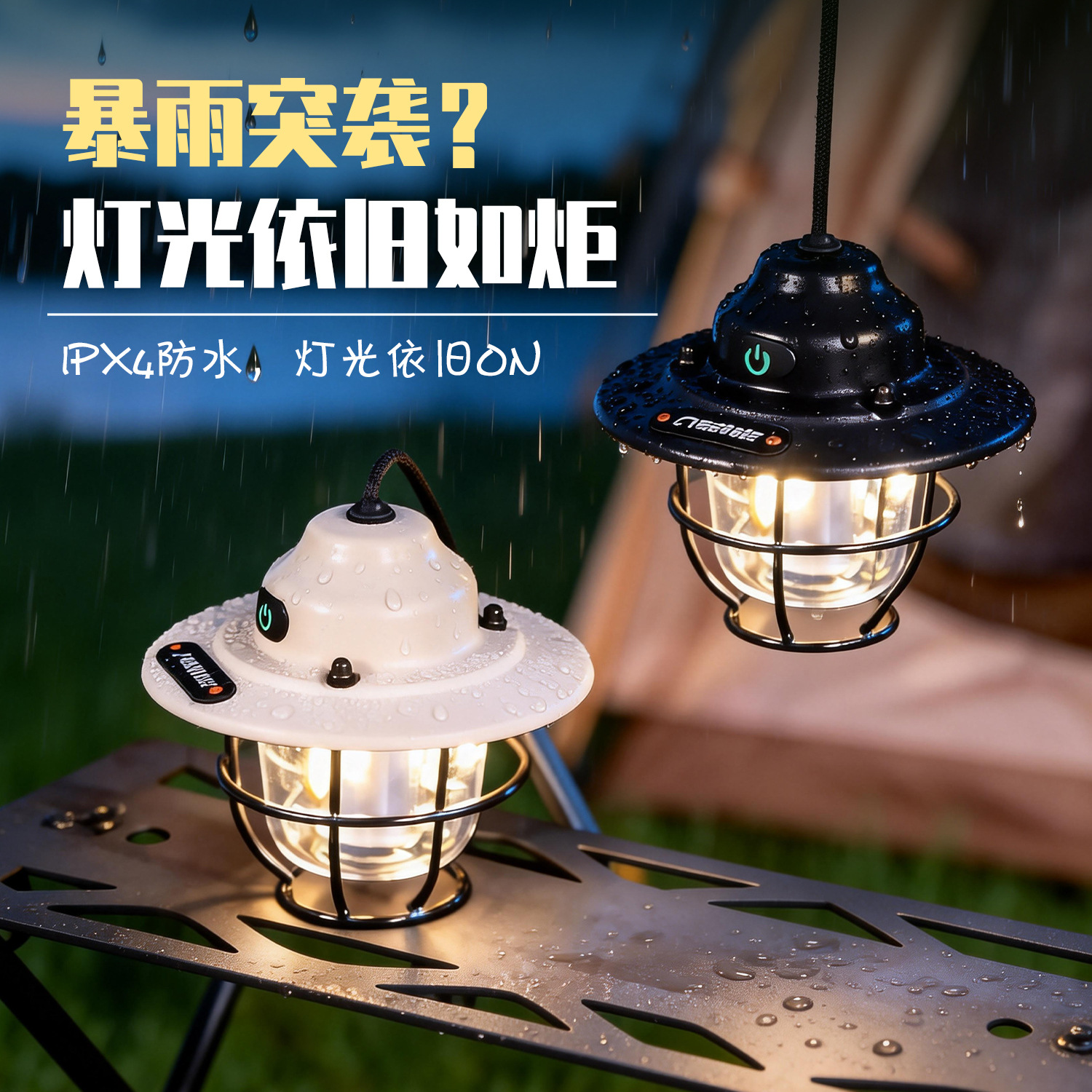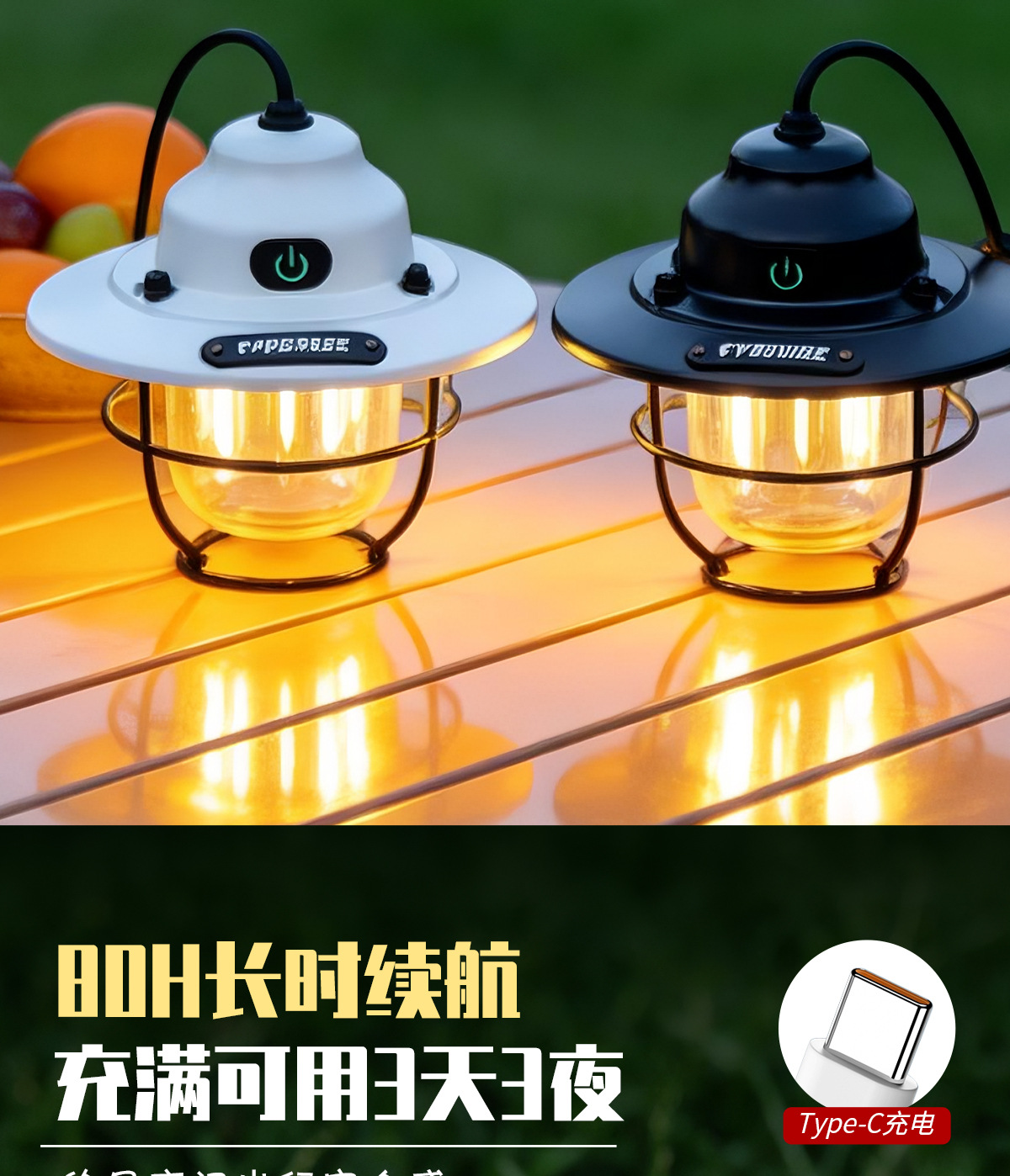 新款私模户外野营灯 LED复古马灯 手提帐篷灯便捷式USB充电露营灯