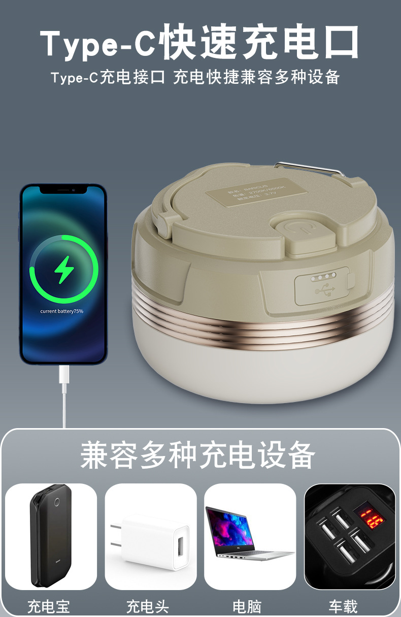 露营灯超长续航亚马逊跨境电商超亮迷你帐篷户外野营灯充电照明灯