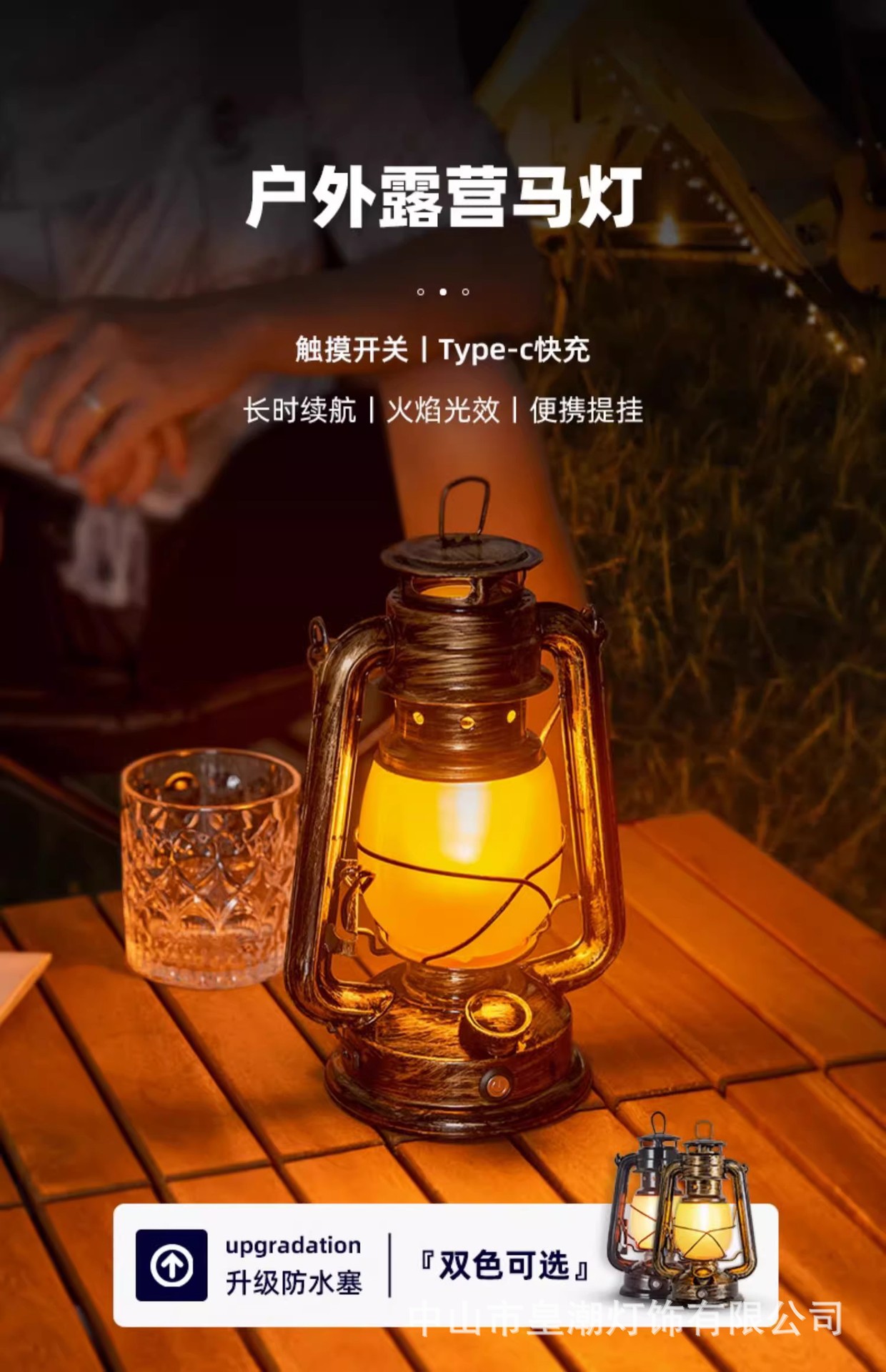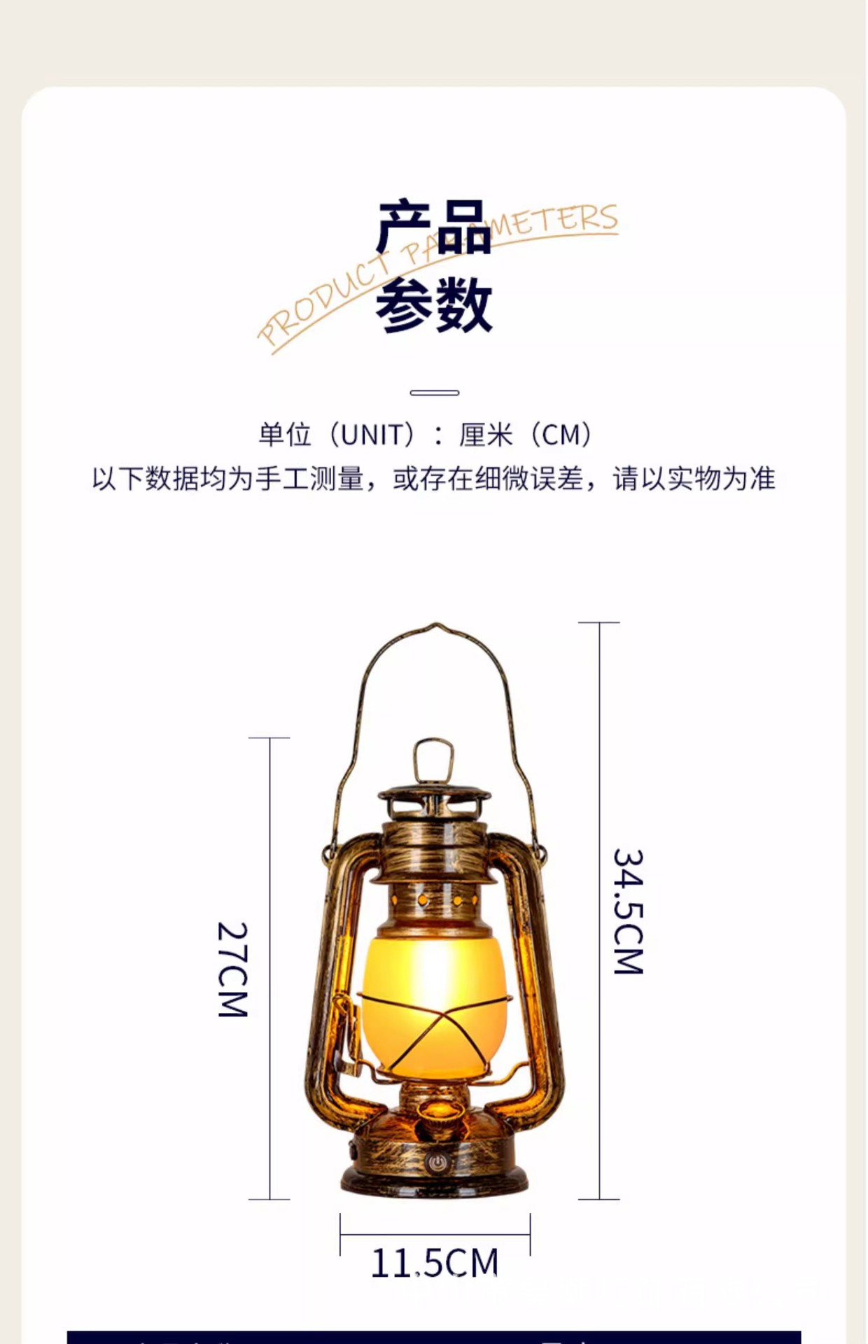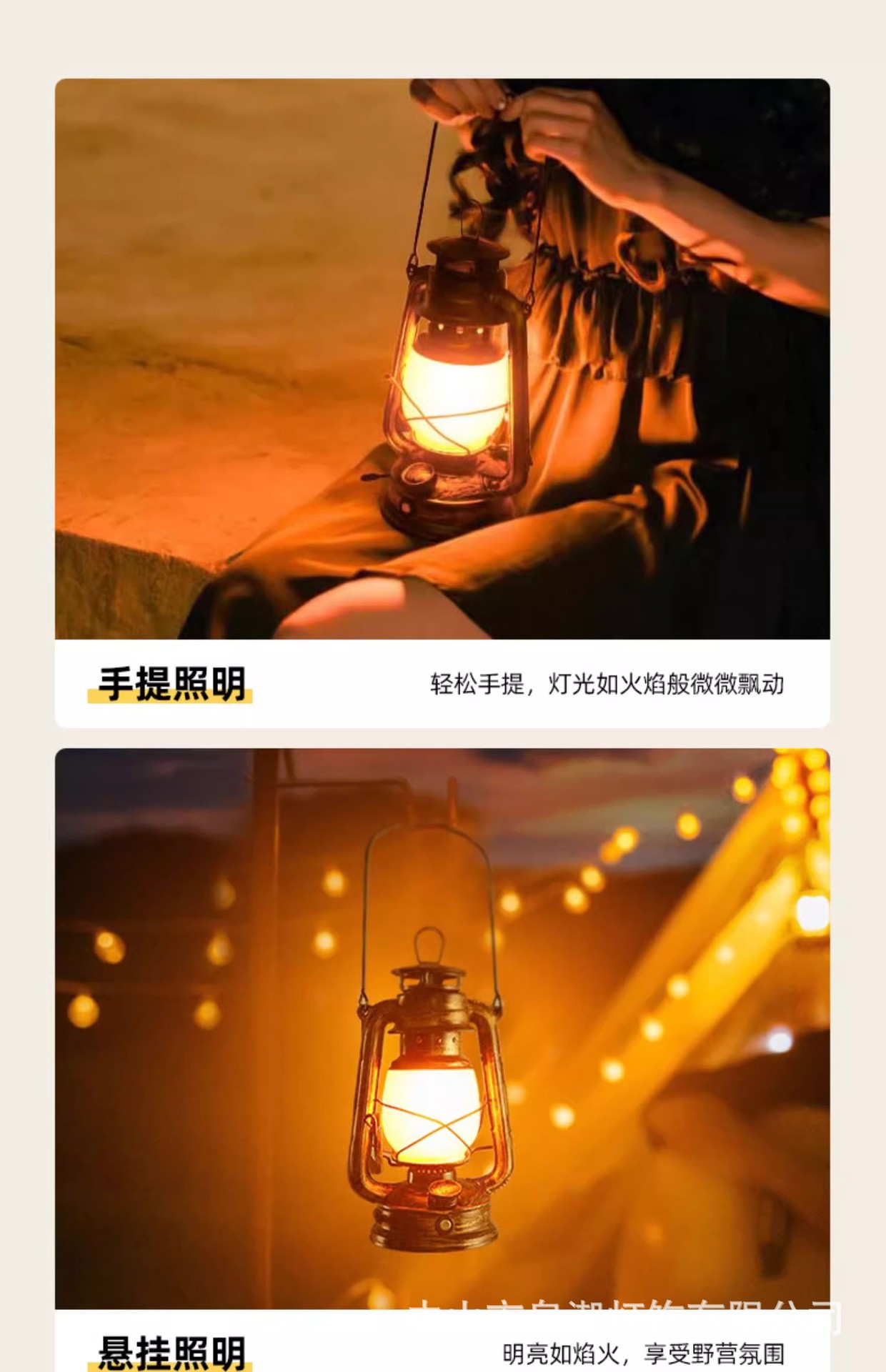 露营灯野营灯复古马灯氛围灯手提灯帐篷灯充电煤油灯太阳能户外灯