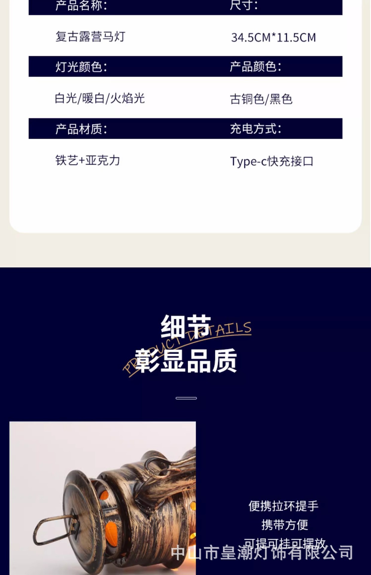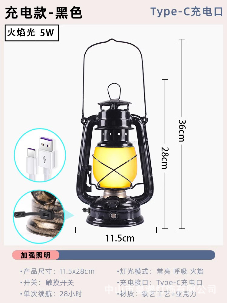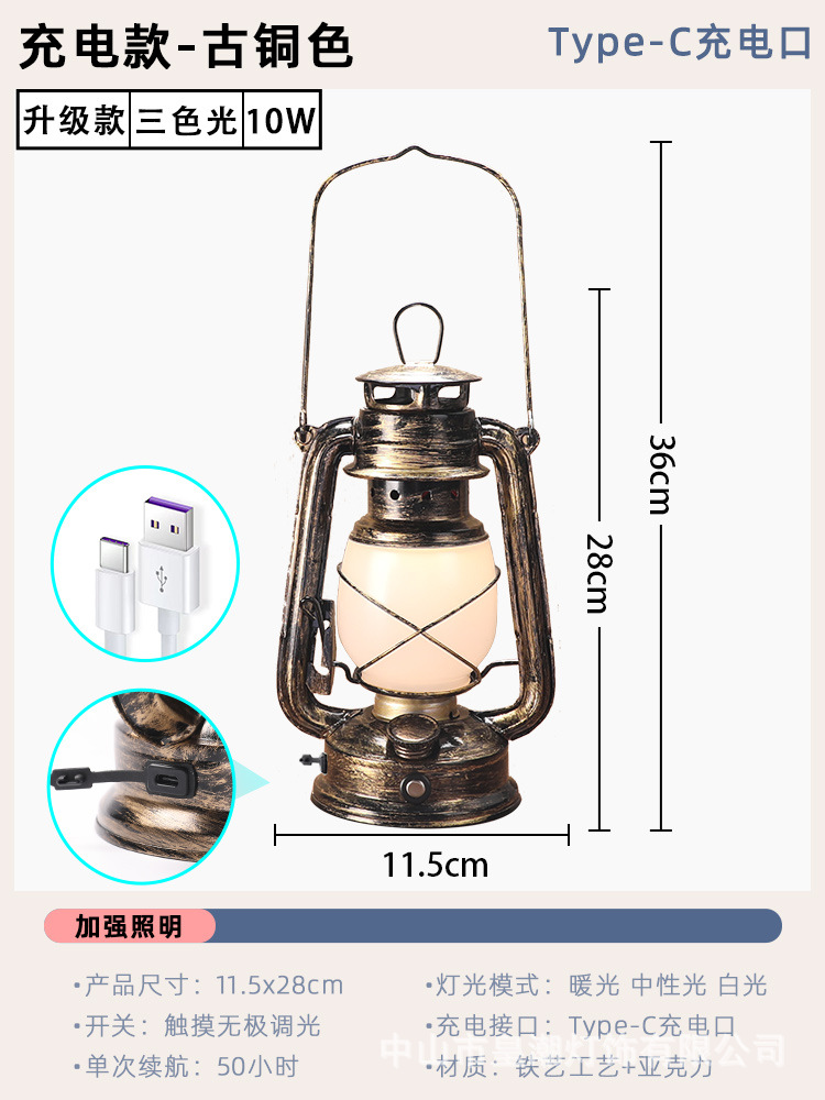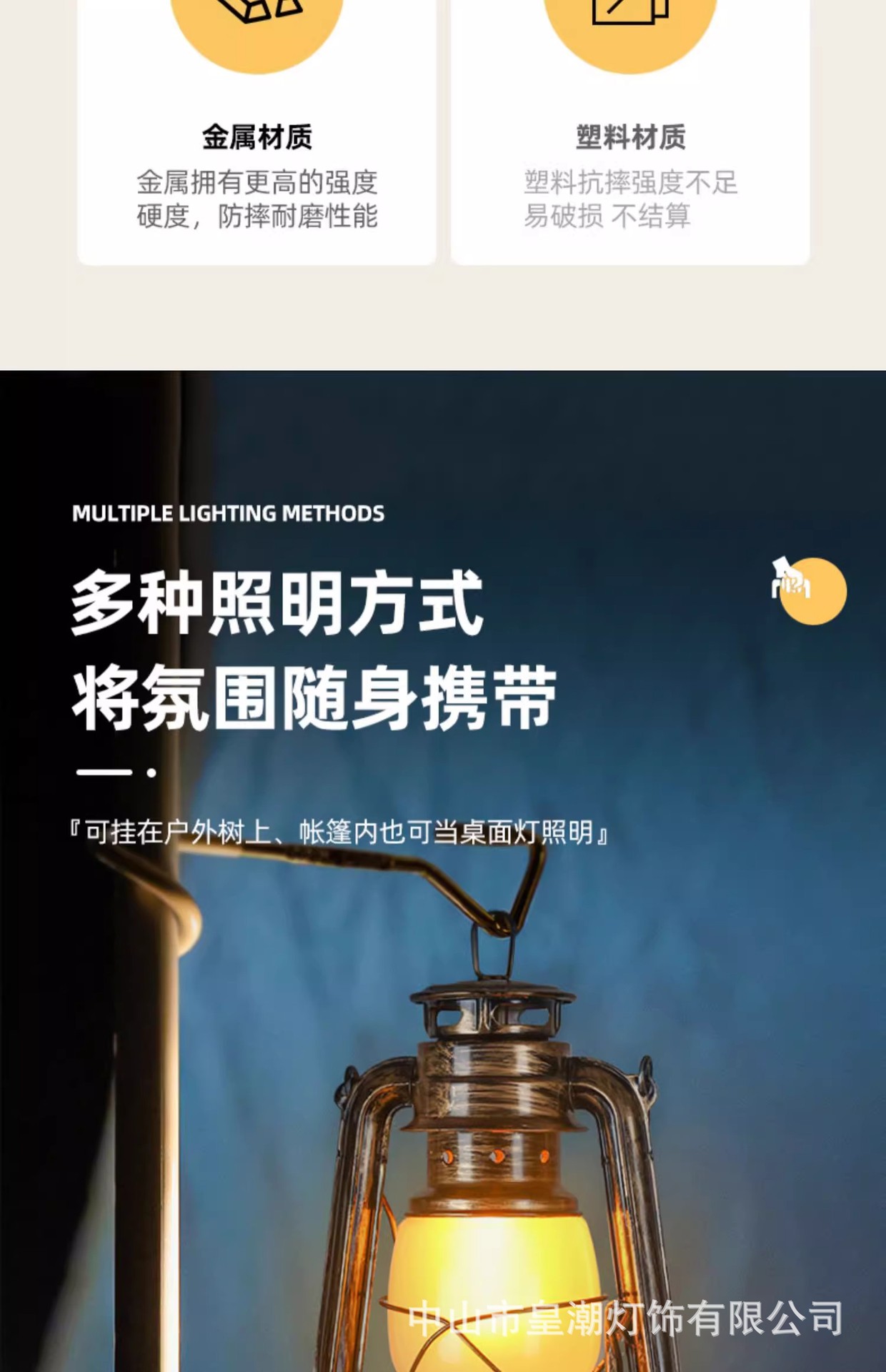 露营灯野营灯复古马灯氛围灯手提灯帐篷灯充电煤油灯太阳能户外灯