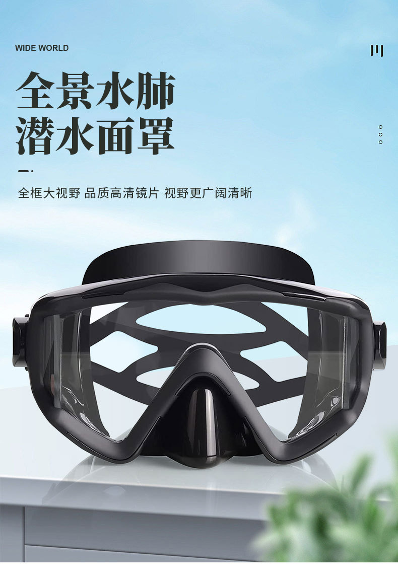 三面全景潜水镜批发自由潜水浮潜游泳镜高清护鼻游泳装备防水