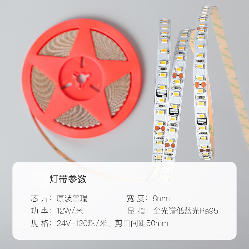 护眼全光谱cob灯带led灯条一灯一剪12V智能防水24V低压贴片灯带