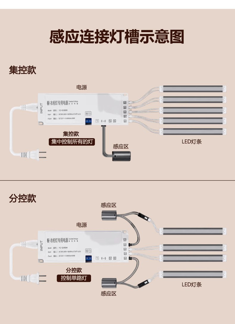 led衣橱柜线条灯带人体感应灯槽酒柜鞋柜灯条亮灯嵌入式安装