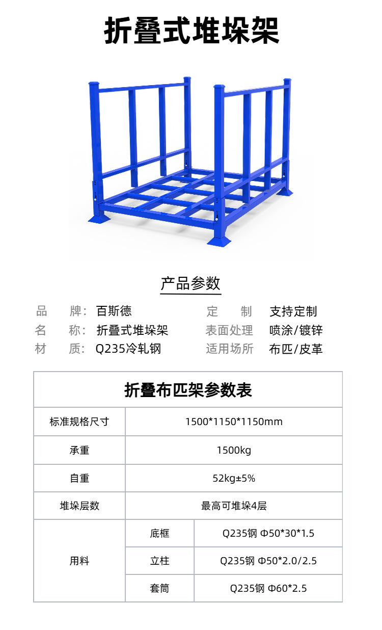 厂家直销布卷折叠仓储堆垛架 布料物料堆叠货架仓库叉车布匹架子