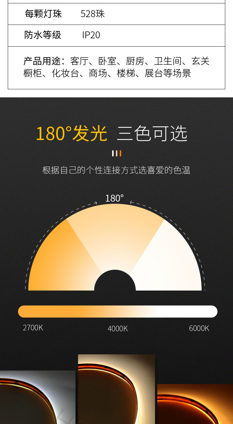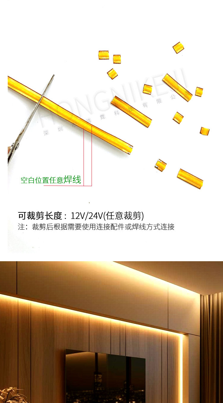 cob任意剪灯带24v自粘低压高显指一灯一剪随意造型软灯条可调光