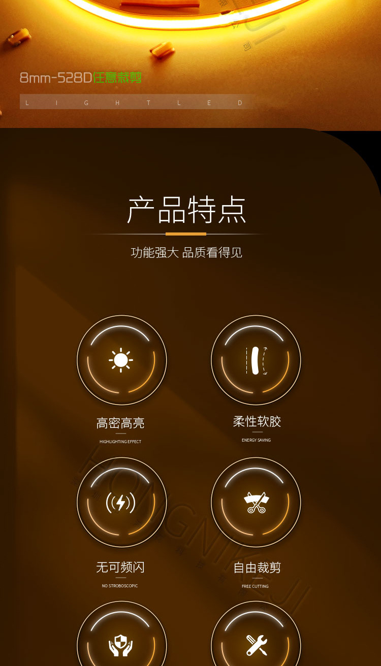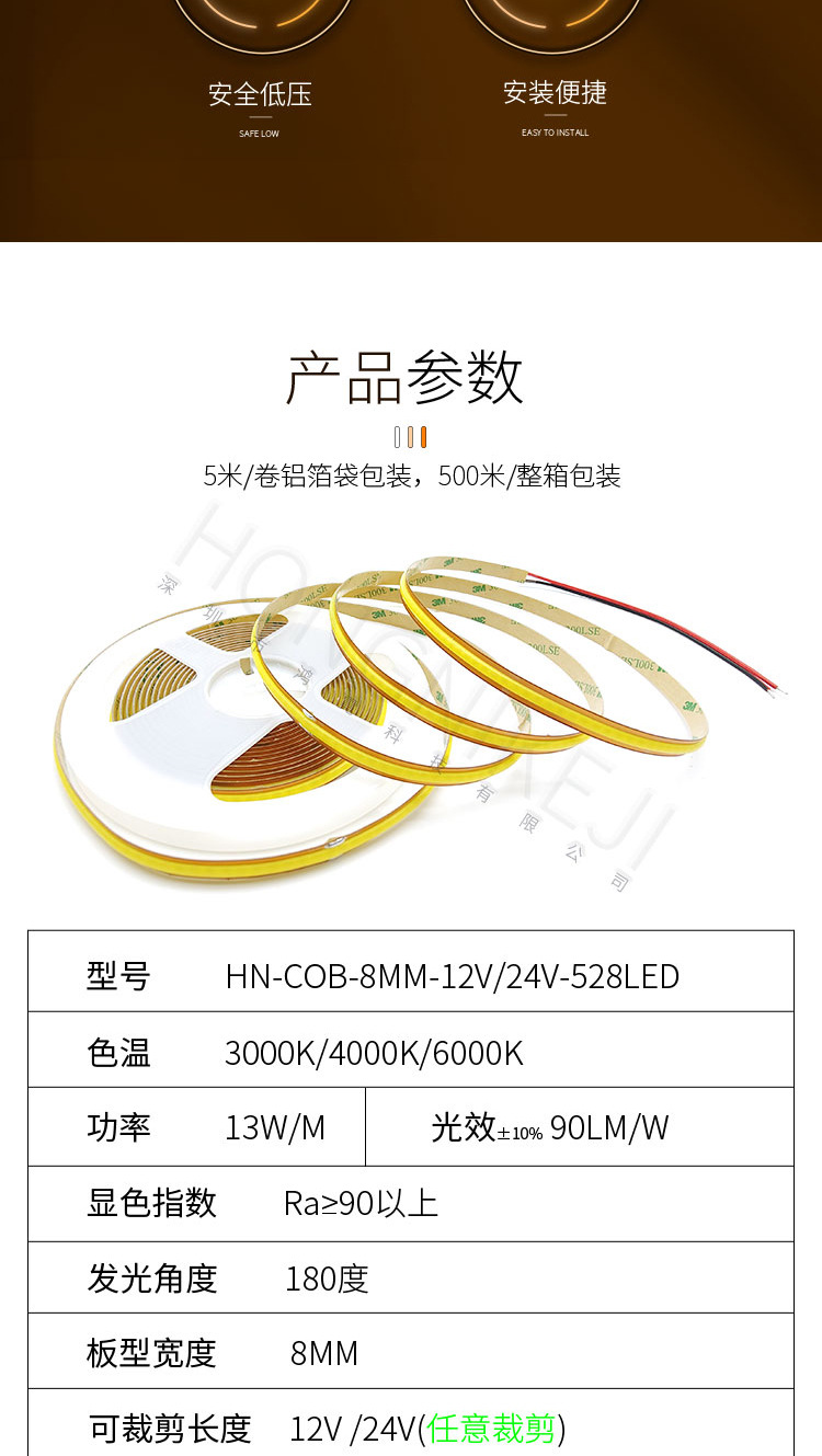 | 任意裁剪-24V-COB-528灯-8MM( 请拍5米的倍数) | USD $2.68 | 29930 m available |