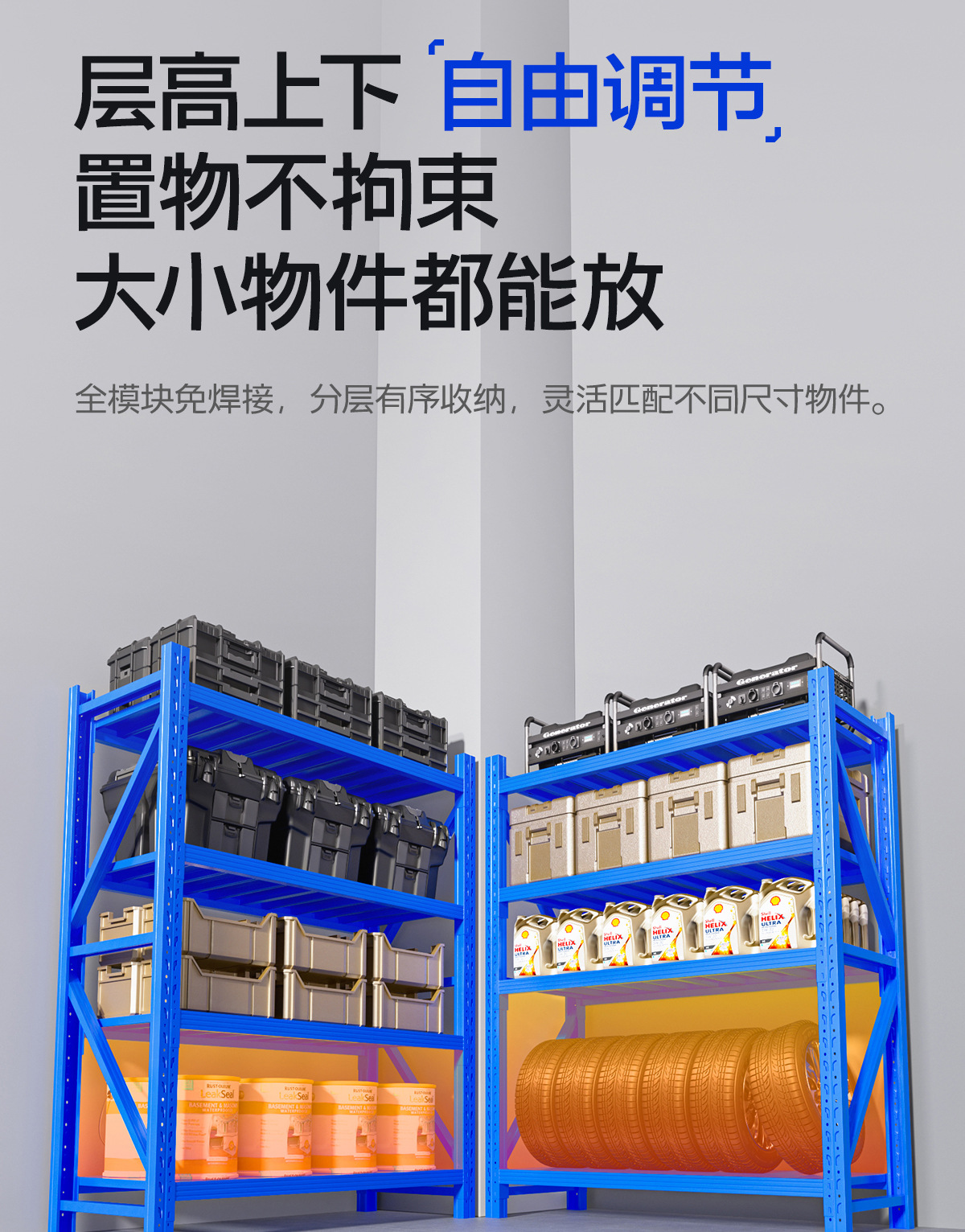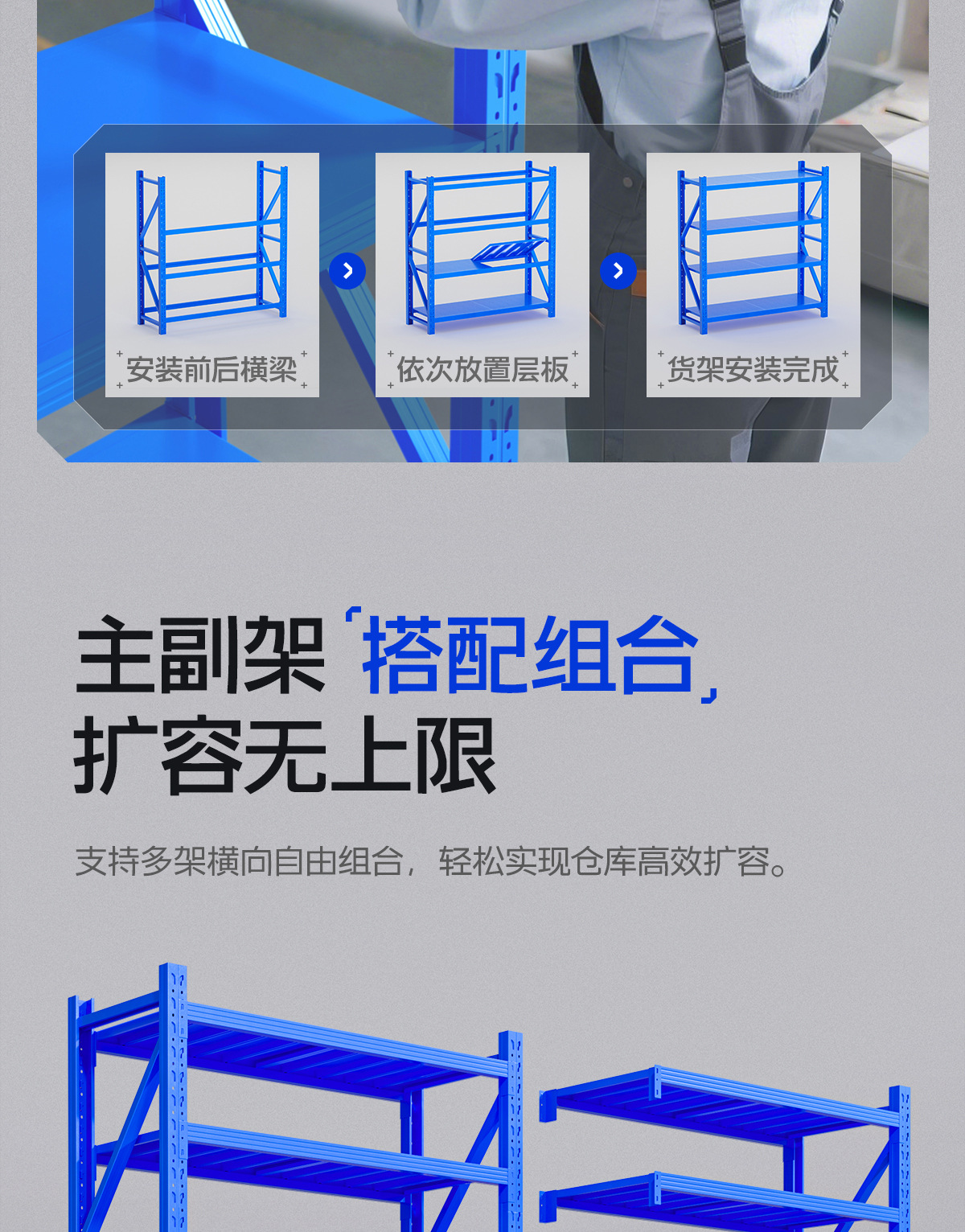 | blue light main frame: length 800 * width 400 * height 1800*2 layers (single layer <100kg)(蓝色轻型主架:长800*宽400*高1800*2层(单层<100KG)) | USD $16.91 | 996 piece available |