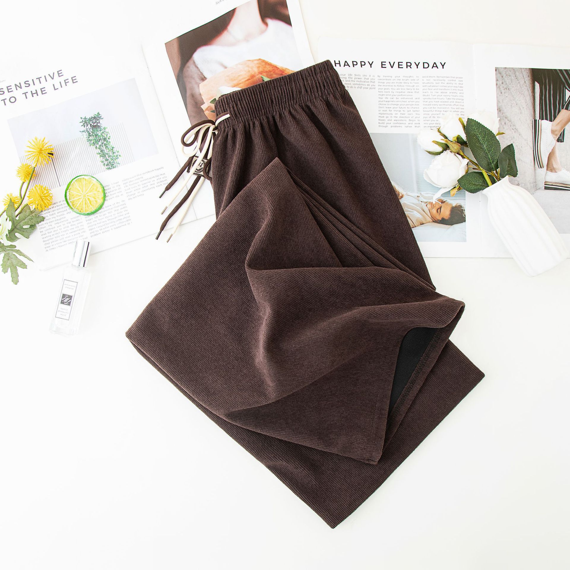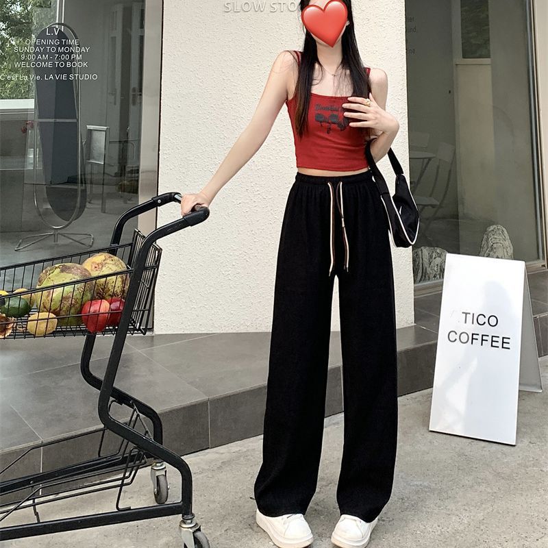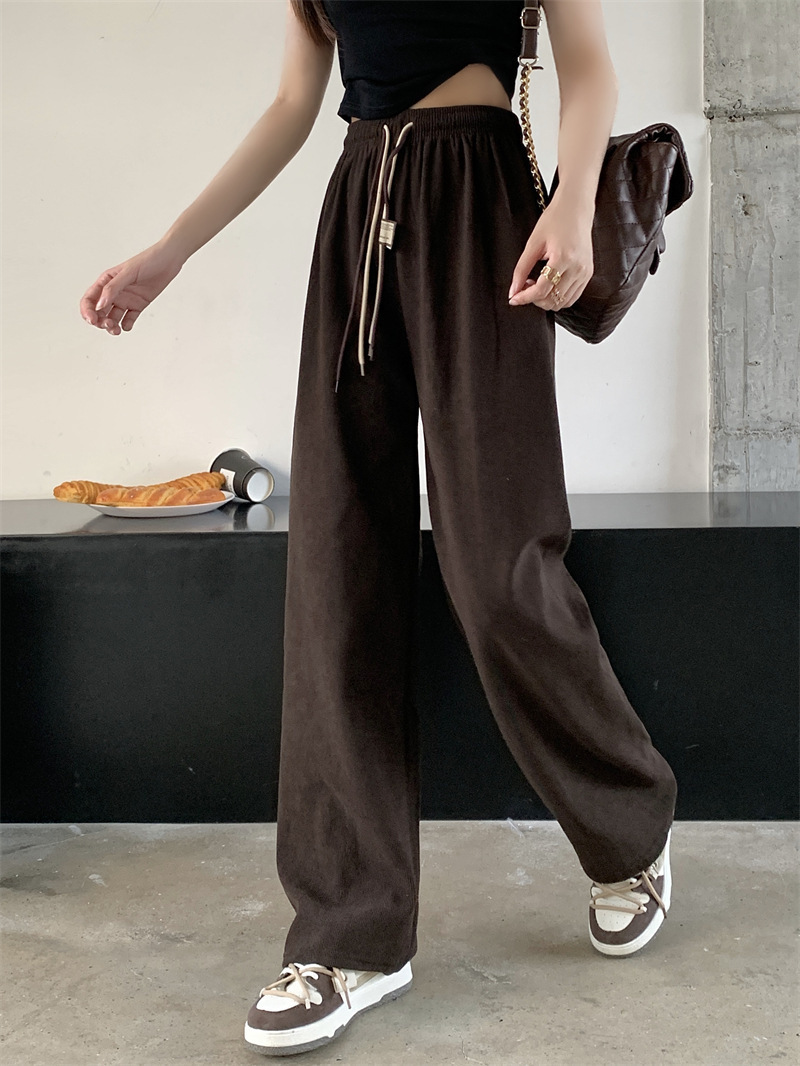 2026春季跨境新款双抽绳灯芯绒阔腿裤高腰垂感直筒裤宽松休闲裤女