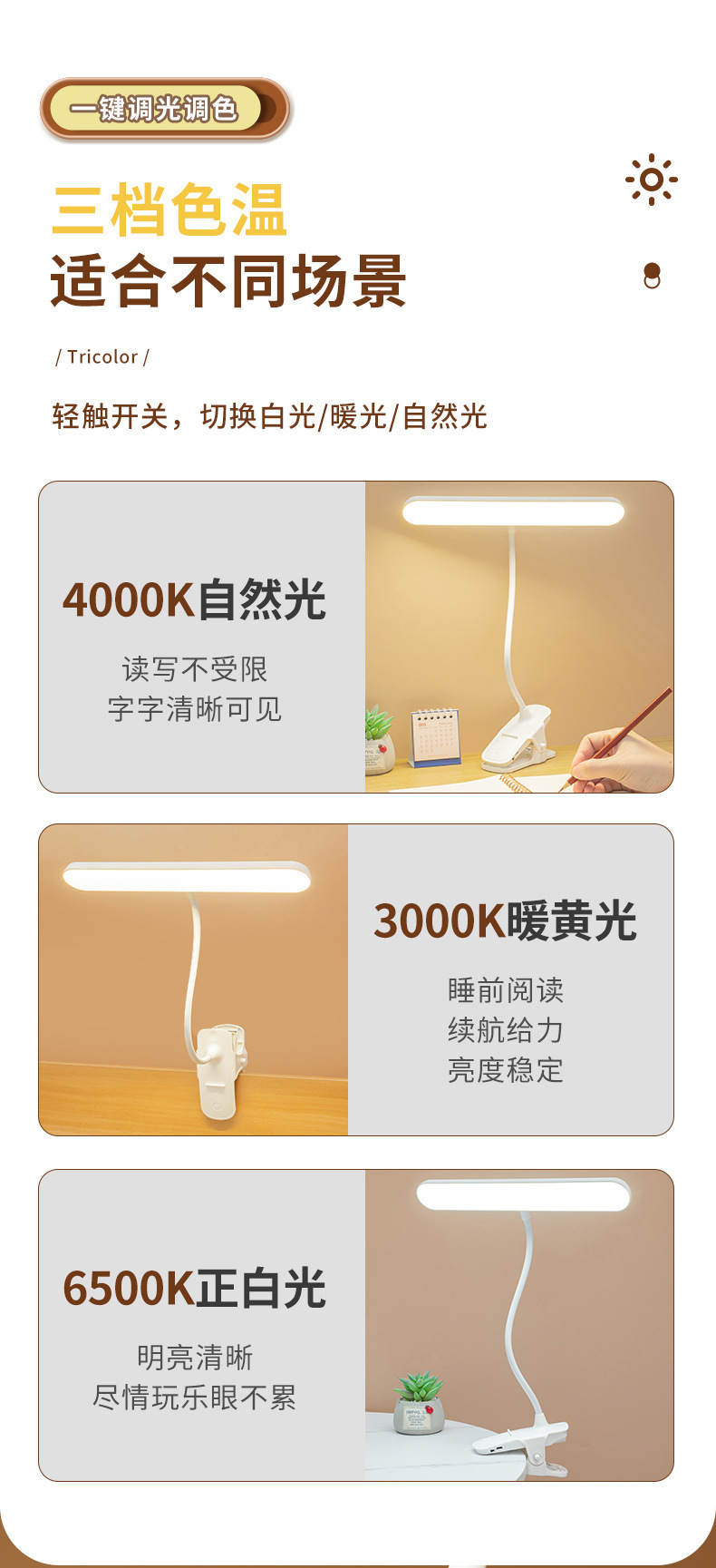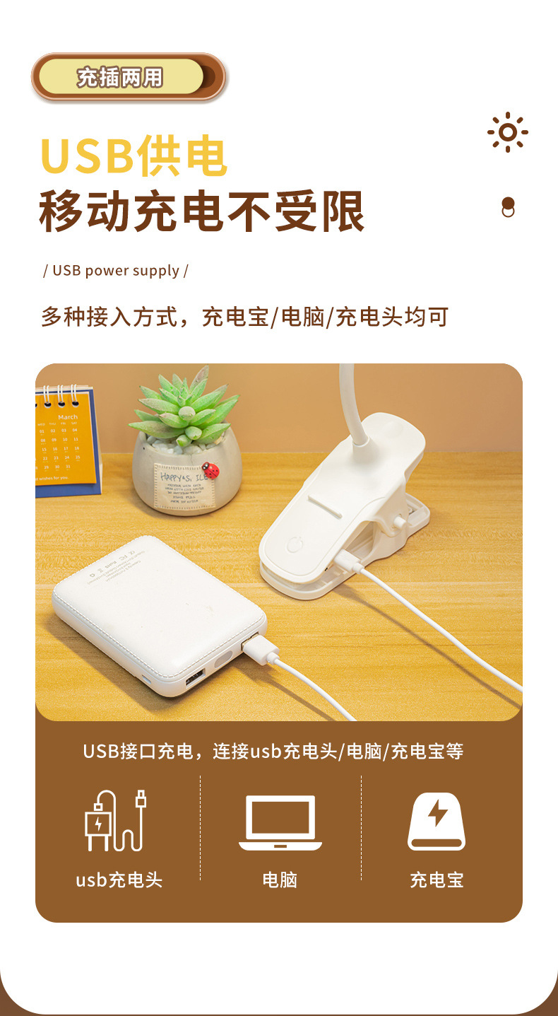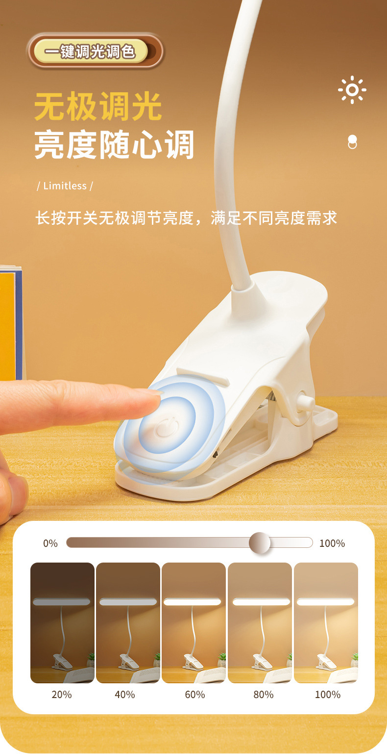 台灯LED护眼学习灯学生专用阅读灯夹子床头灯充电书桌宿舍阅读灯