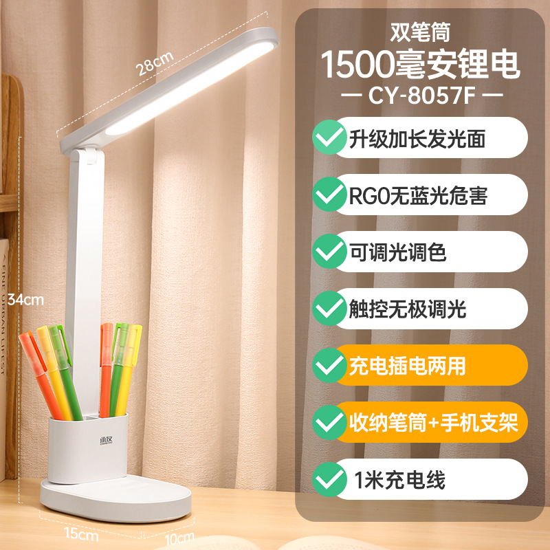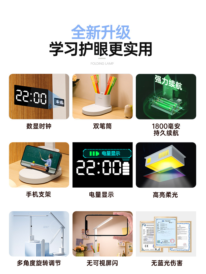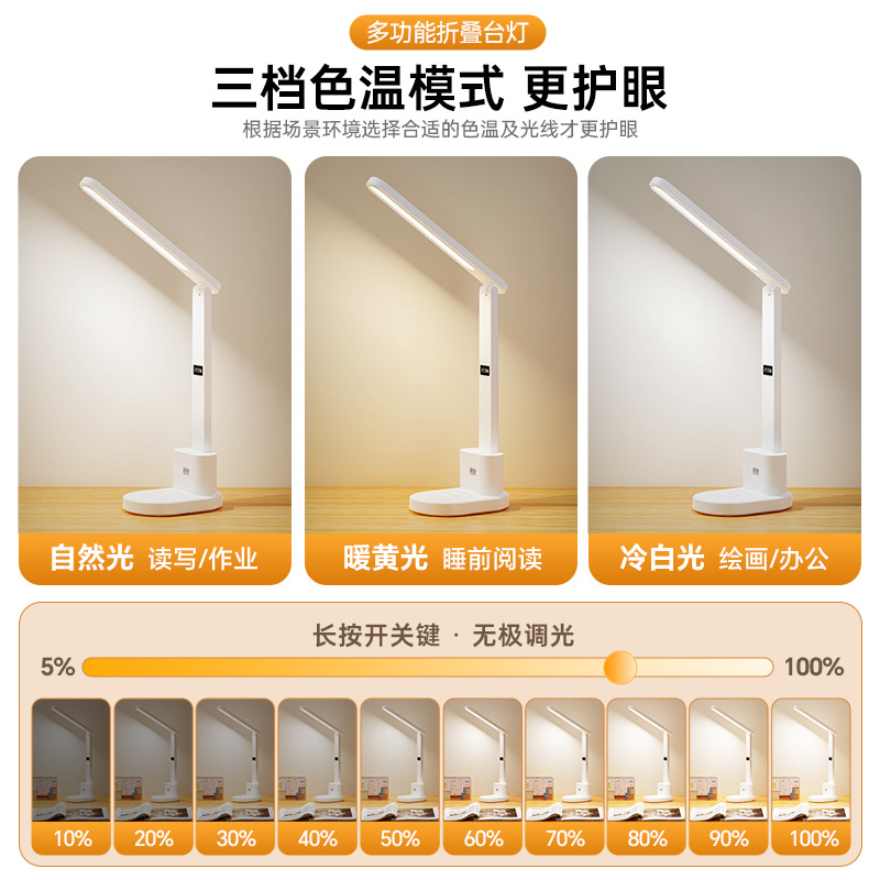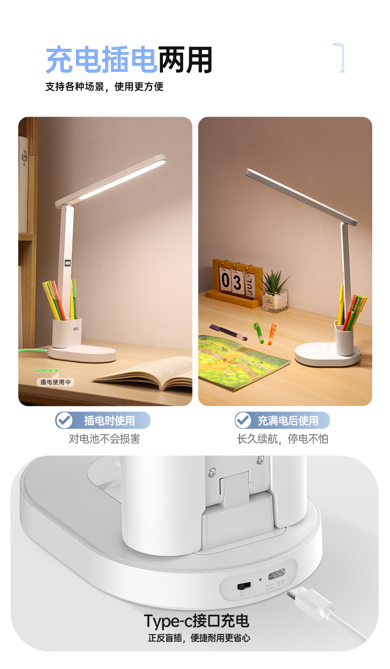 雅格护眼台灯学习专用宿舍大学生充插两用工作灯可折叠床头阅读灯