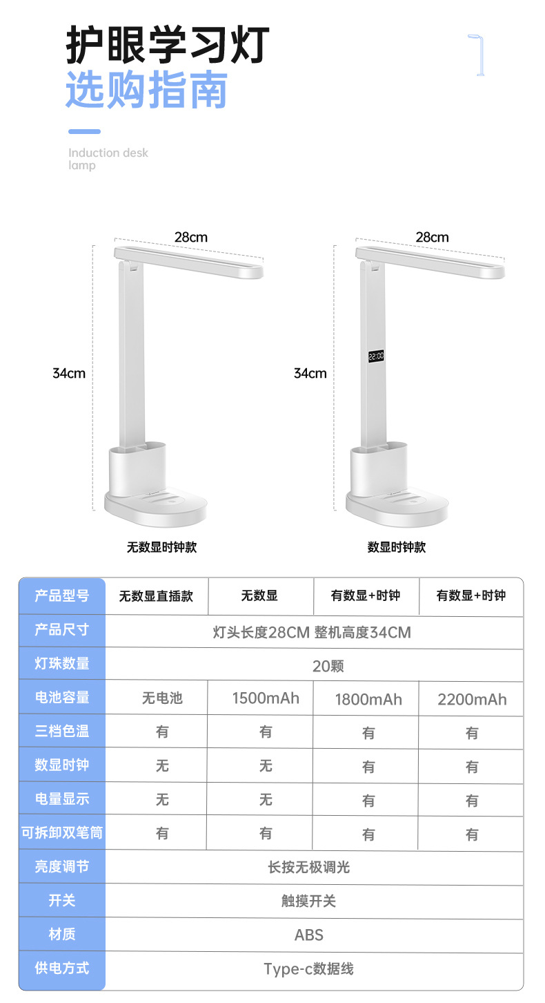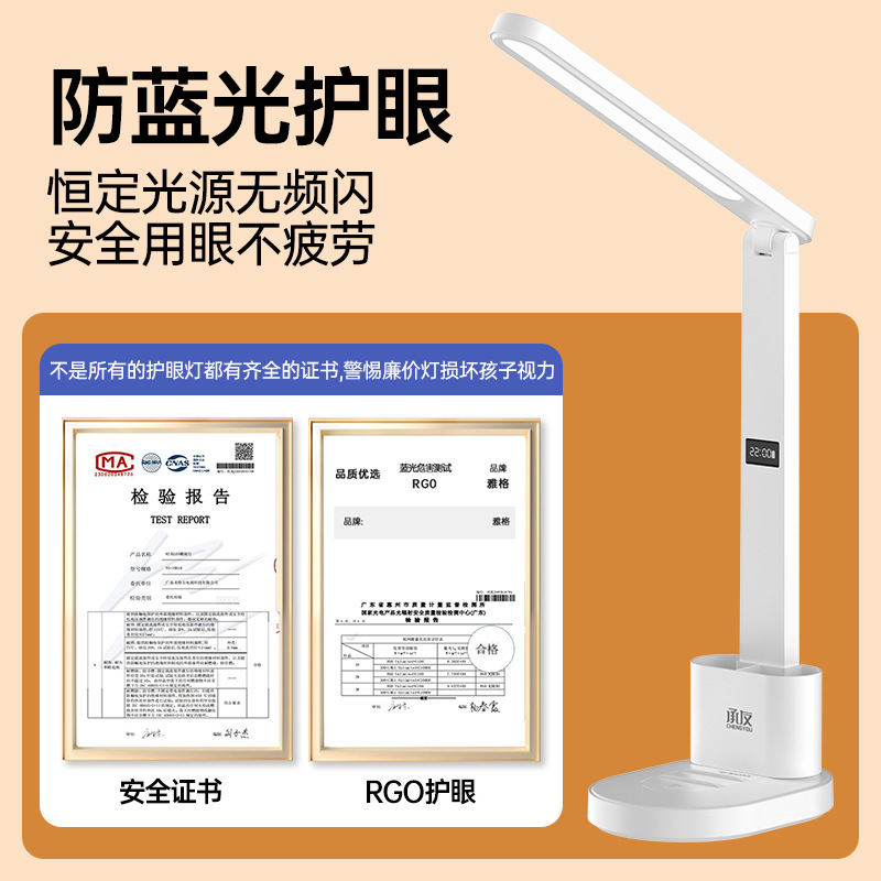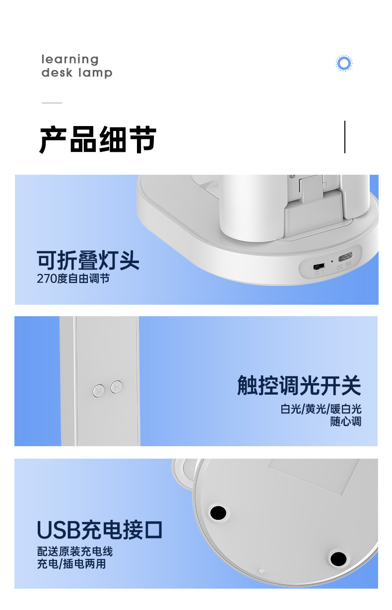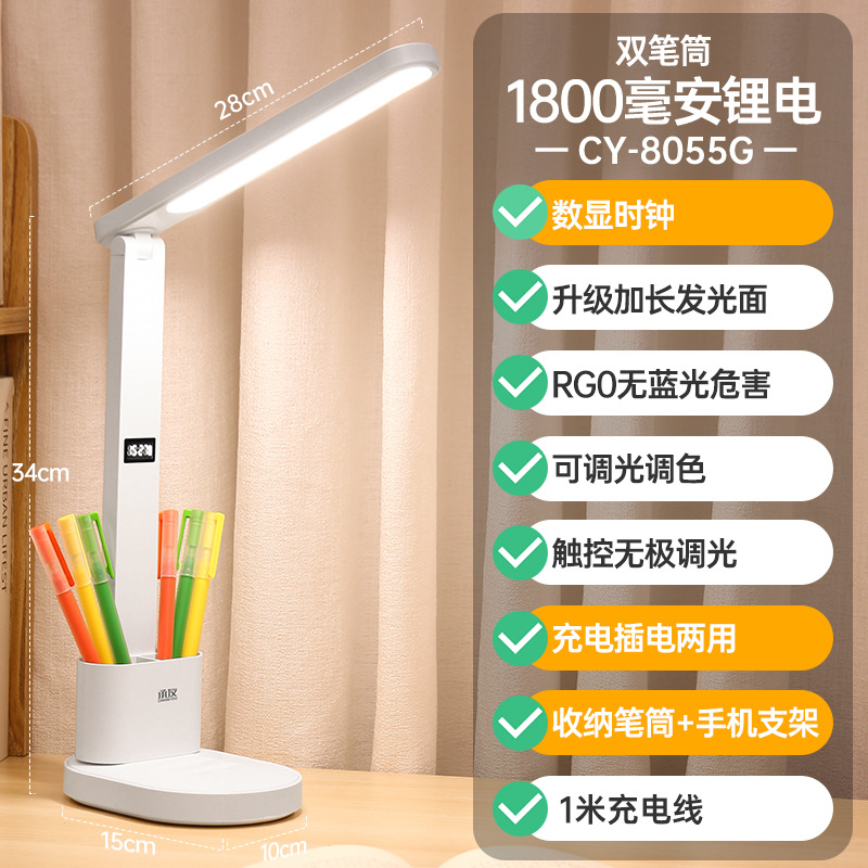 雅格护眼台灯学习专用宿舍大学生充插两用工作灯可折叠床头阅读灯