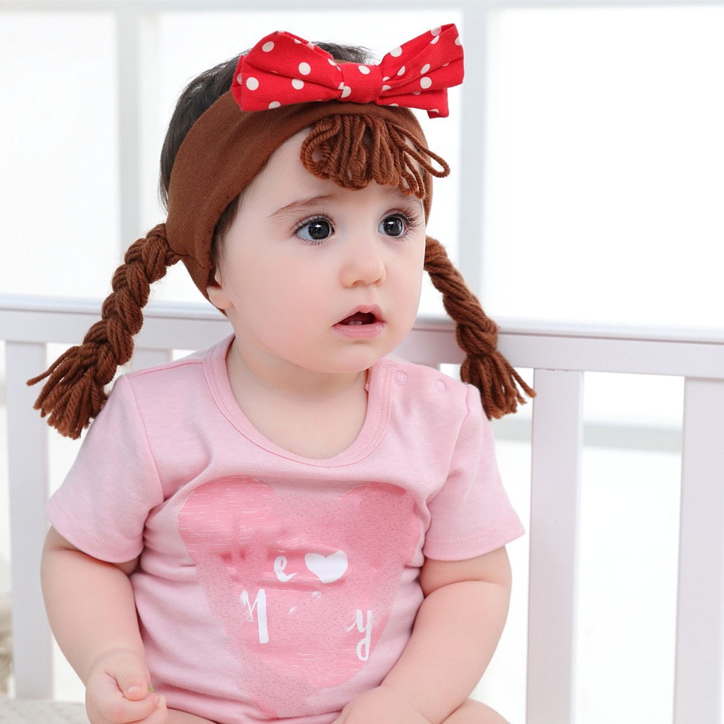 ins儿童发饰蝴蝶结婴儿小辫子束发带棉质女童头饰发圈卡通辫子