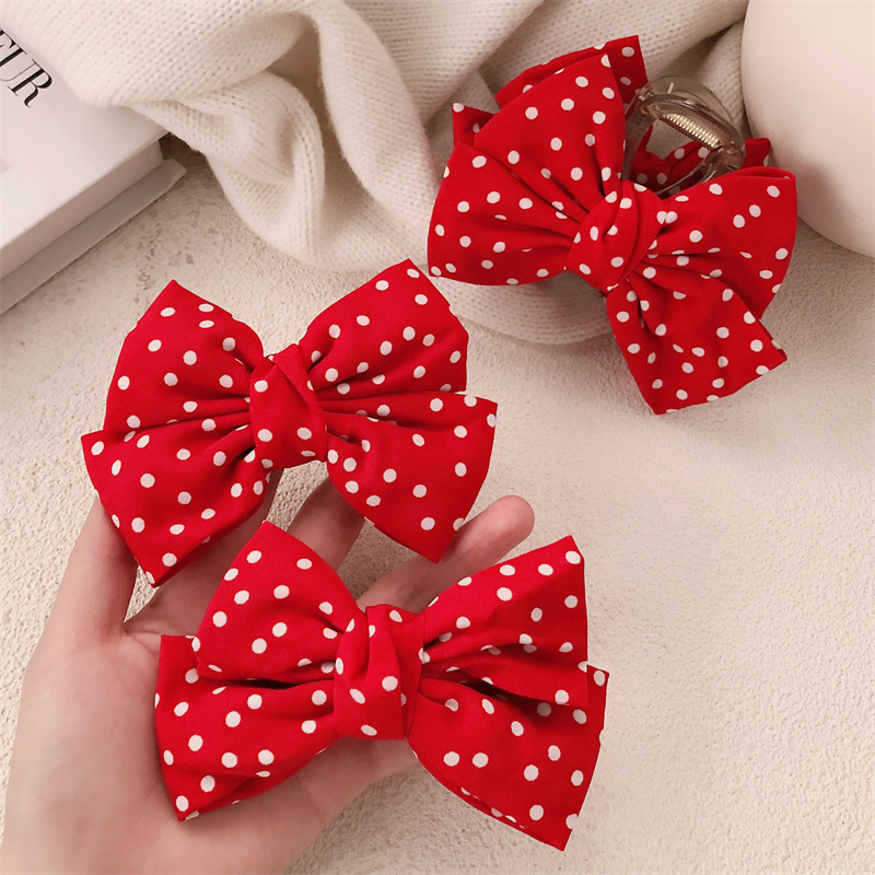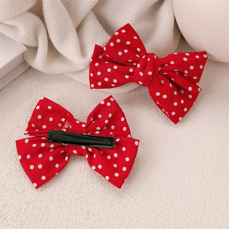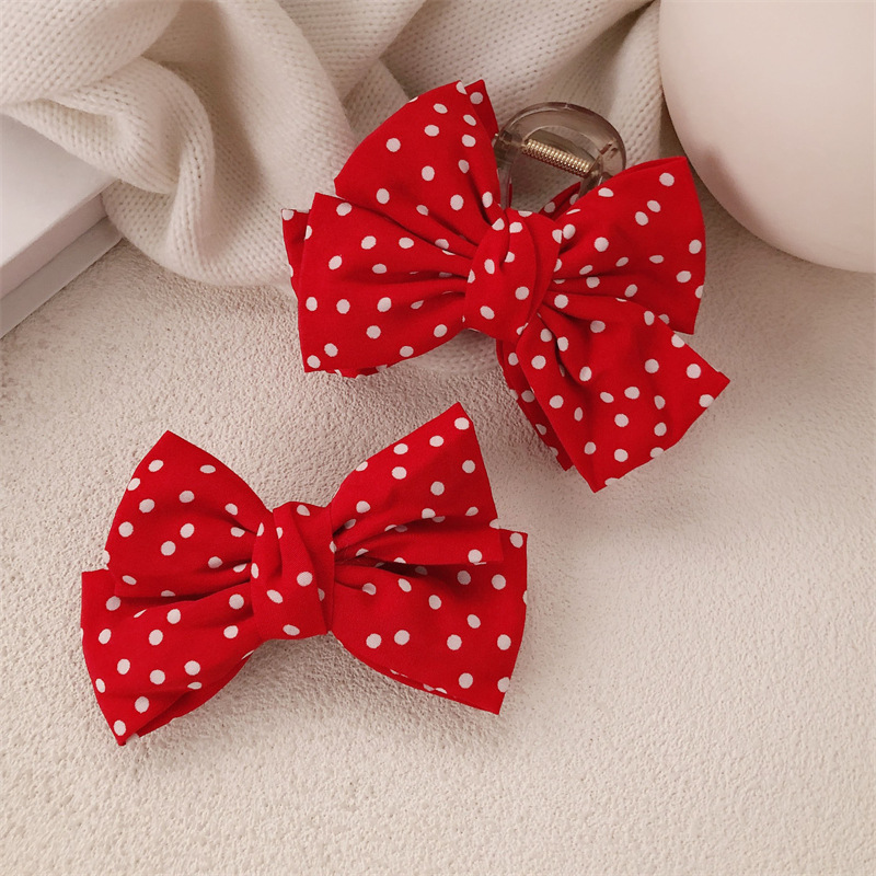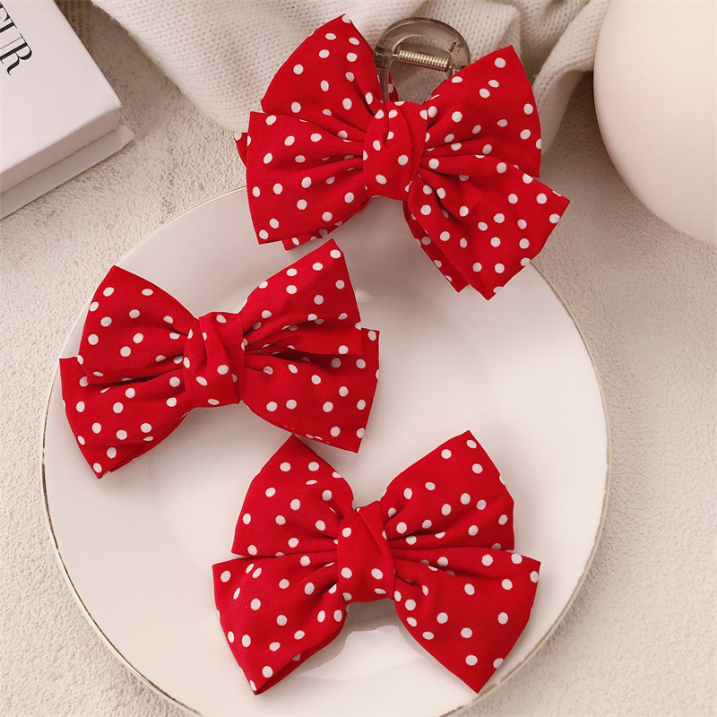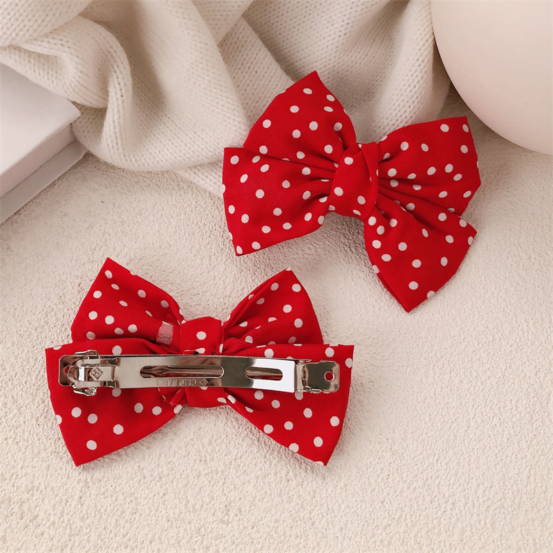 日韩元气感红色波点蝴蝶结发夹可爱JK少女发卡后脑勺顶夹马尾夹子