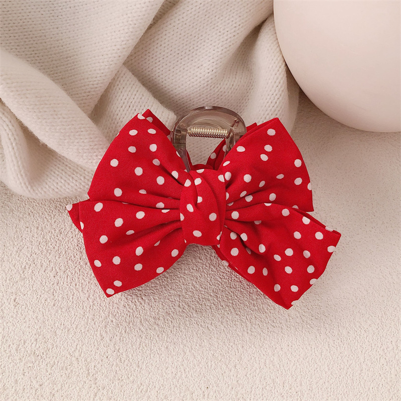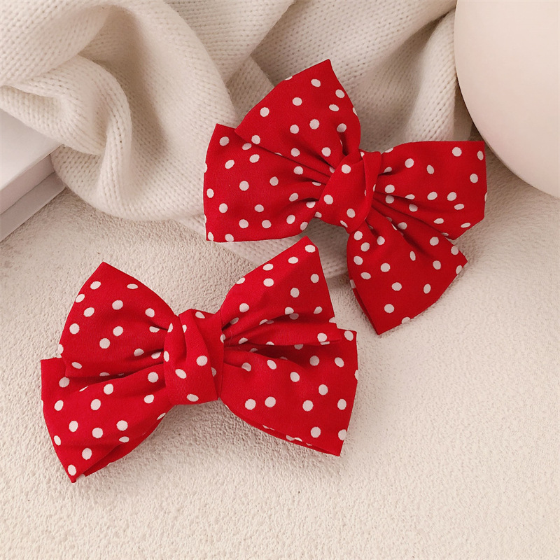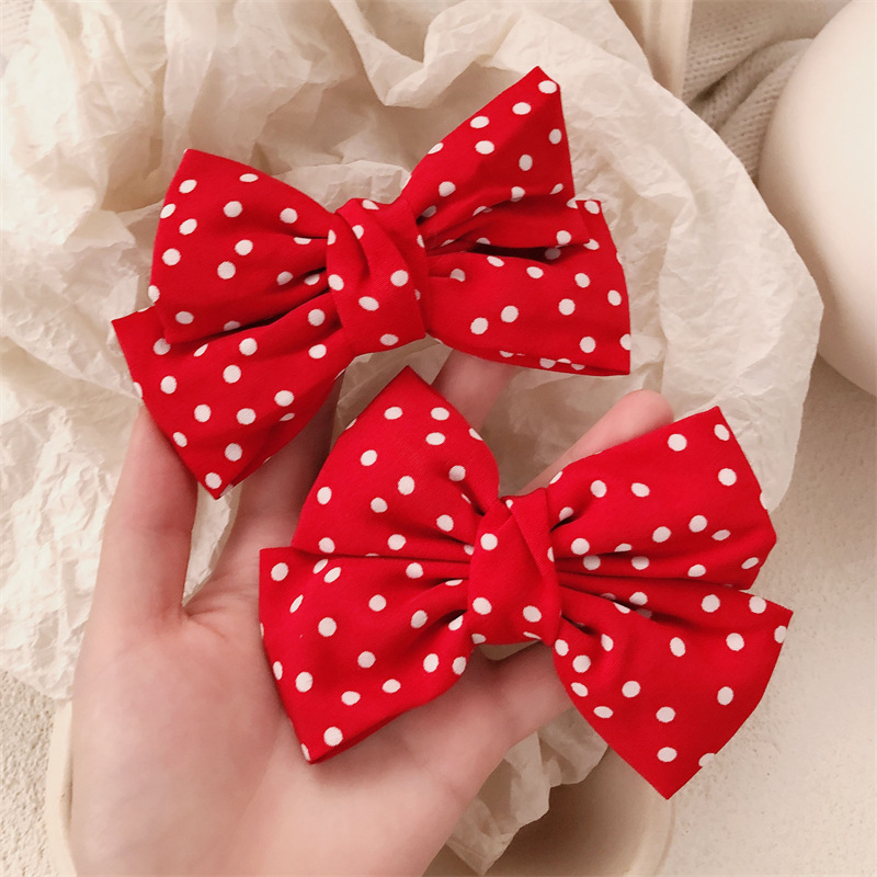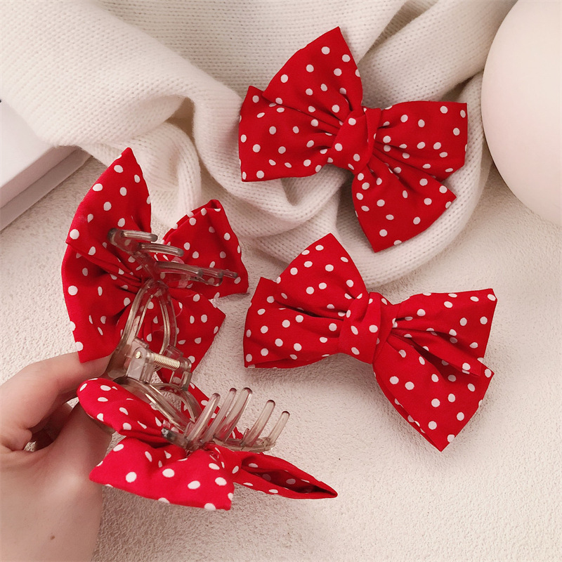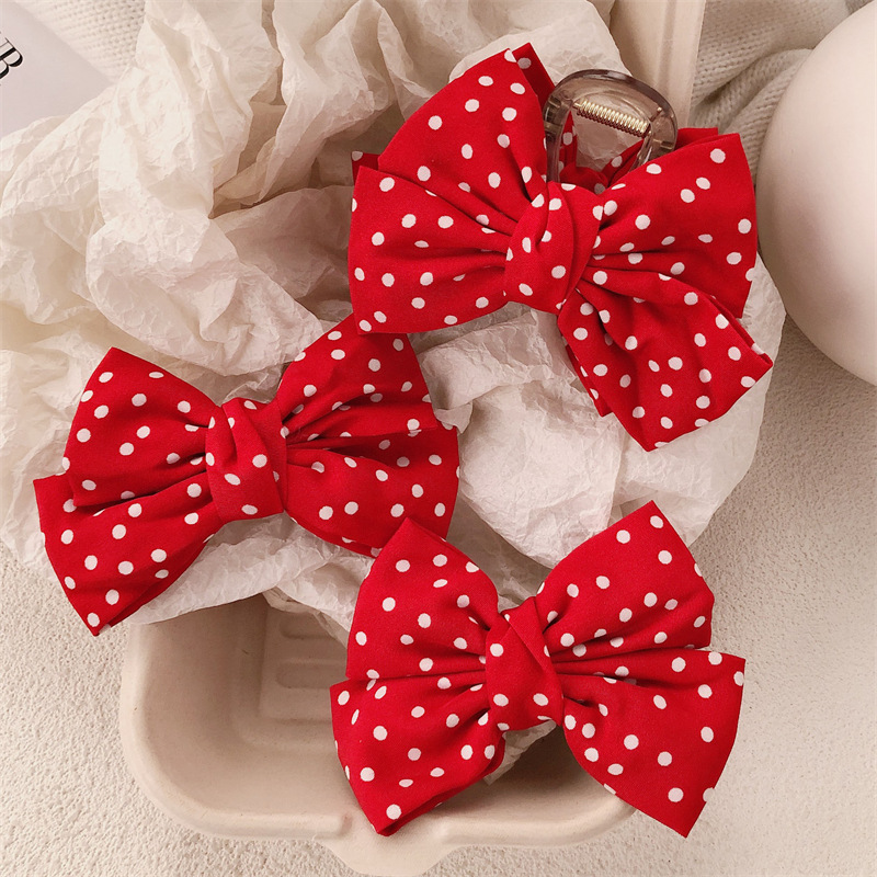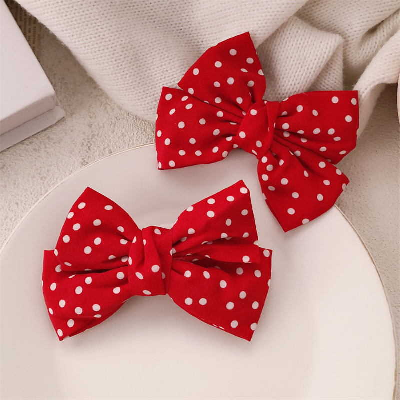 日韩元气感红色波点蝴蝶结发夹可爱JK少女发卡后脑勺顶夹马尾夹子