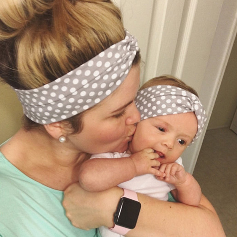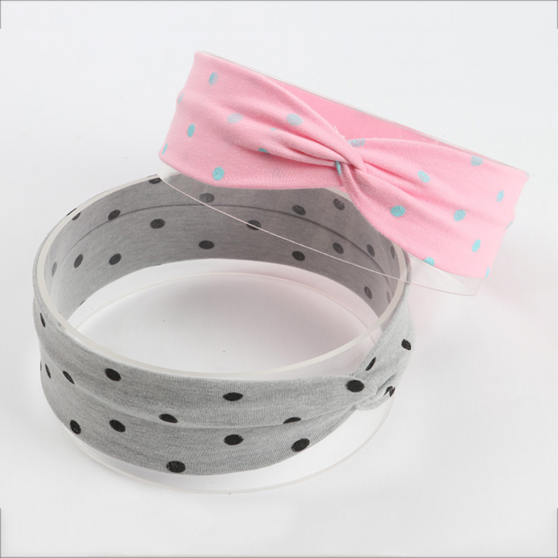 欧美热卖可爱圆点印花交叉发带 婴儿头饰 棉布儿童发饰头带