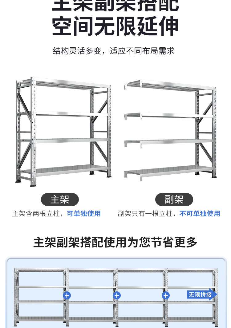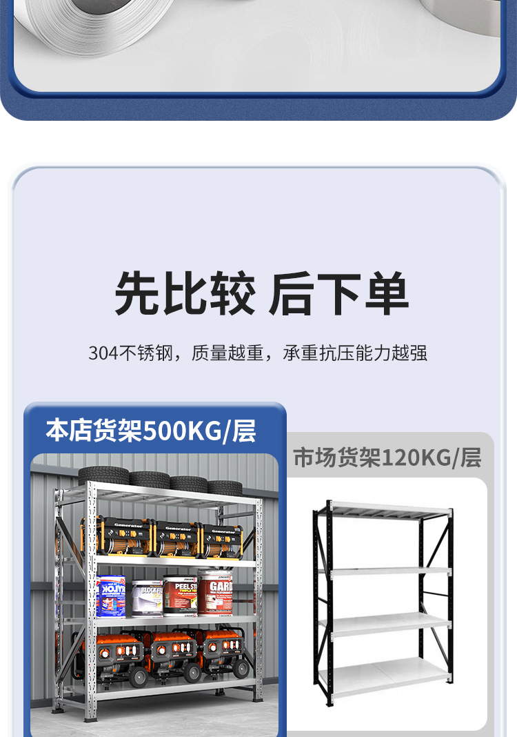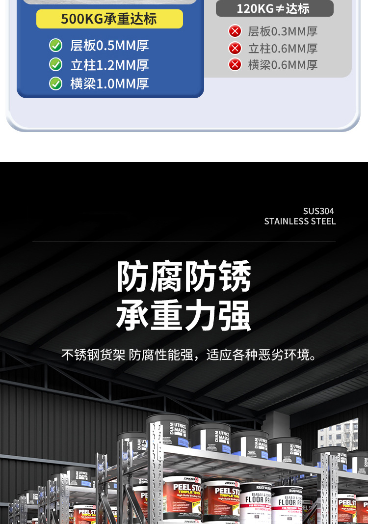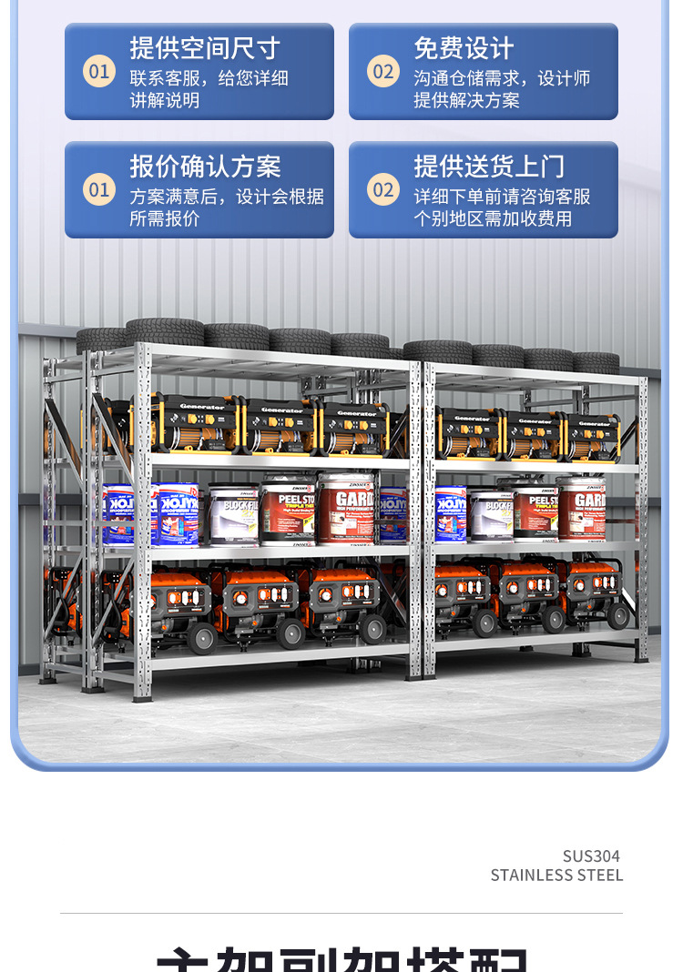 304不锈钢货架仓储重型冷库置物架商用多层可调节储物架仓库货架
