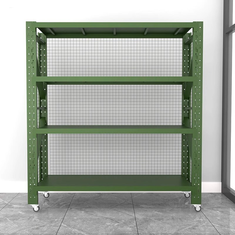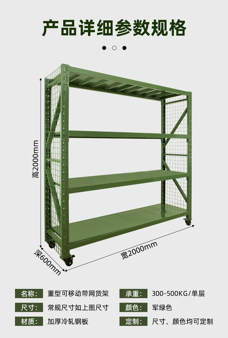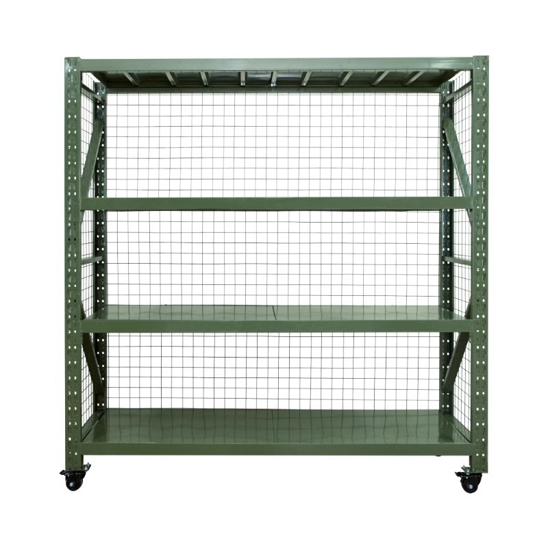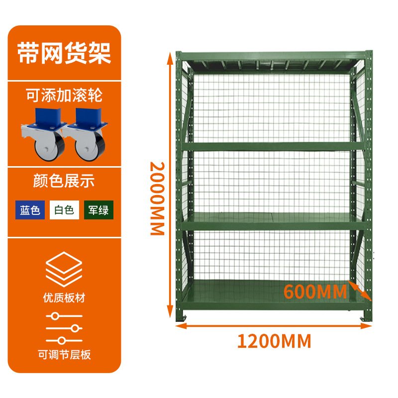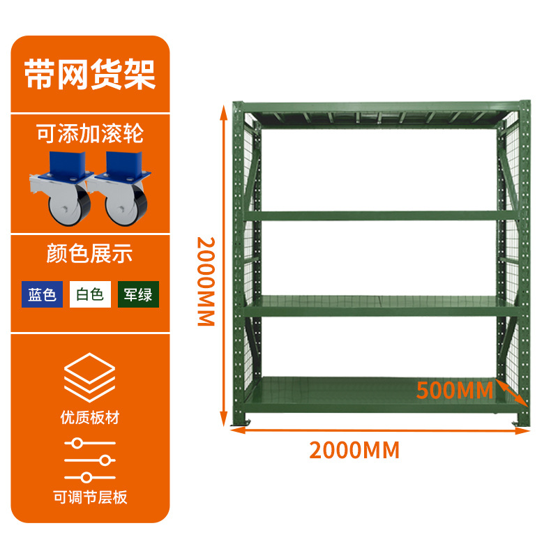 军绿色重型带网货架带轮可移动仓储仓库可调节中型物资置物架批发