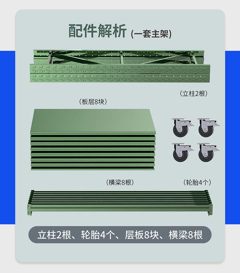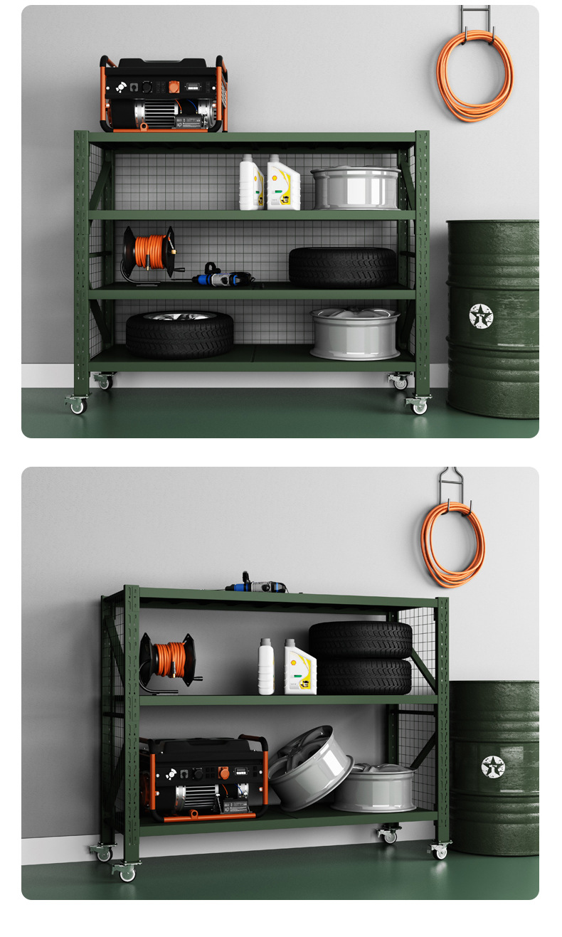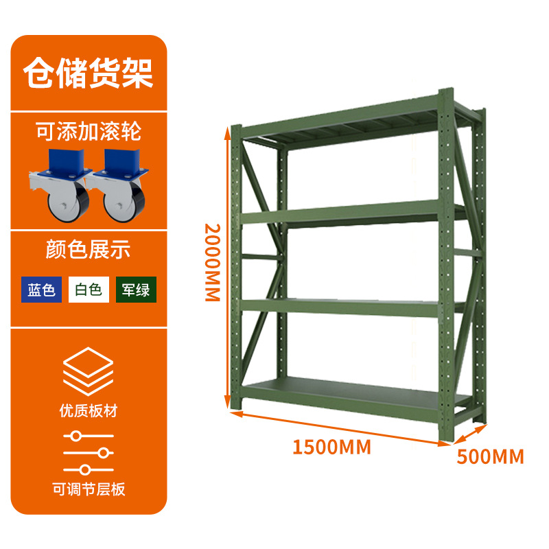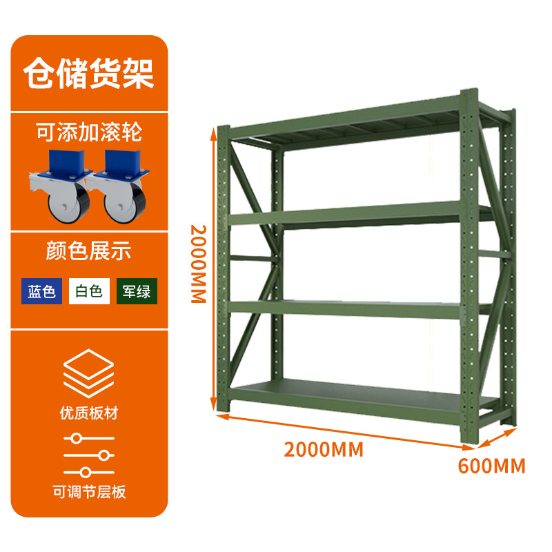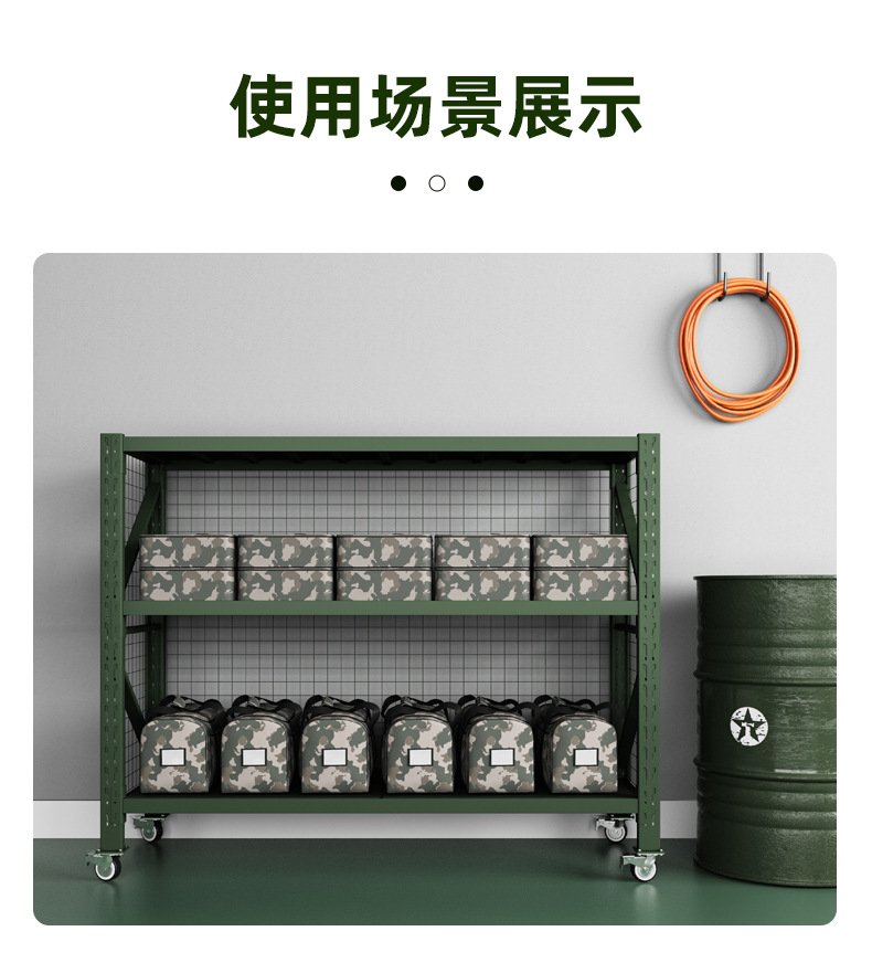 军绿色重型带网货架带轮可移动仓储仓库可调节中型物资置物架批发