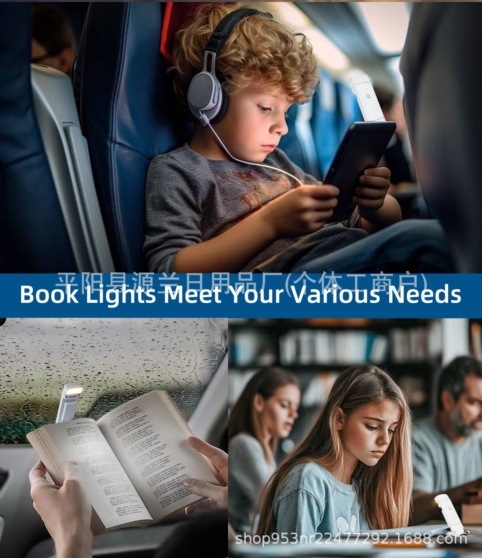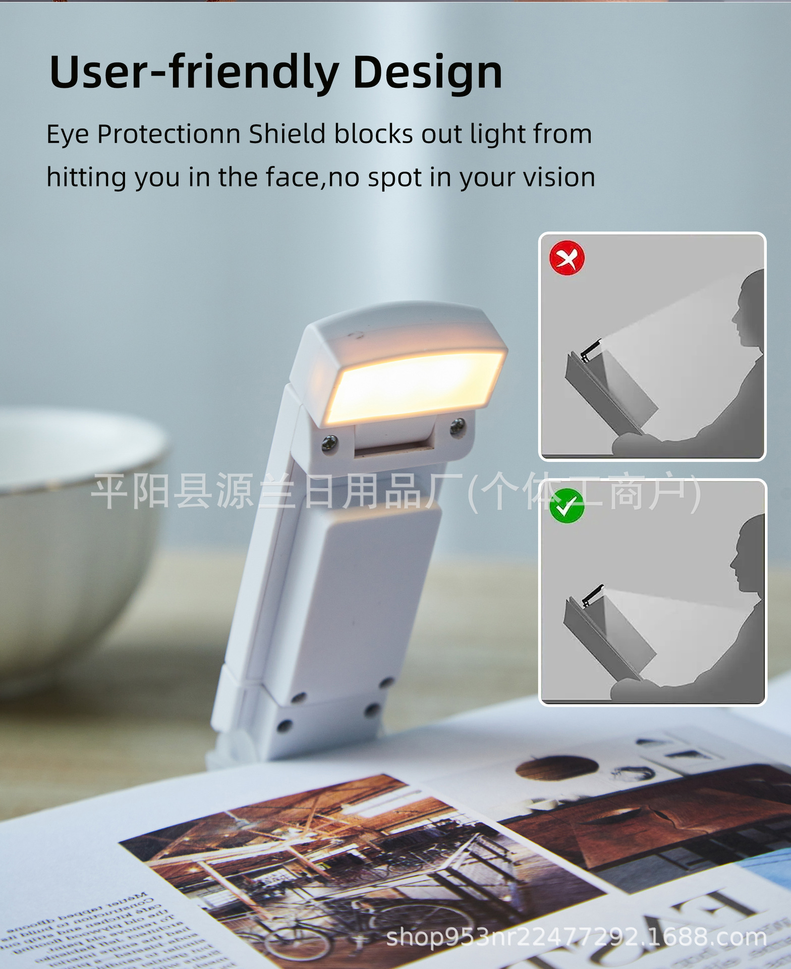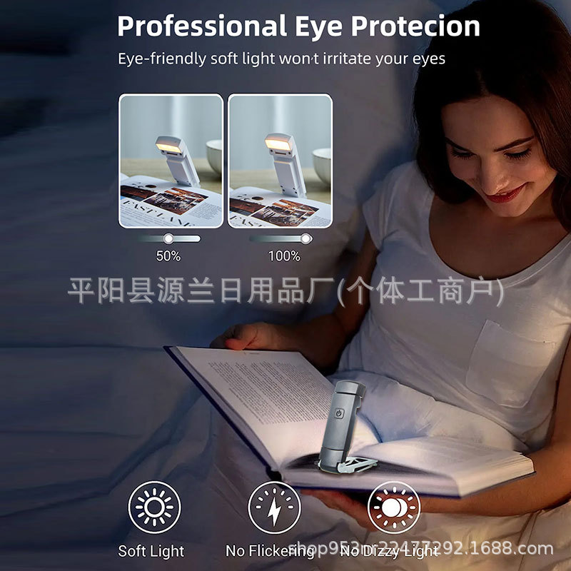 跨境折叠阅读夹书灯USB便携台灯双色护眼LED可调光色阅读小夜灯