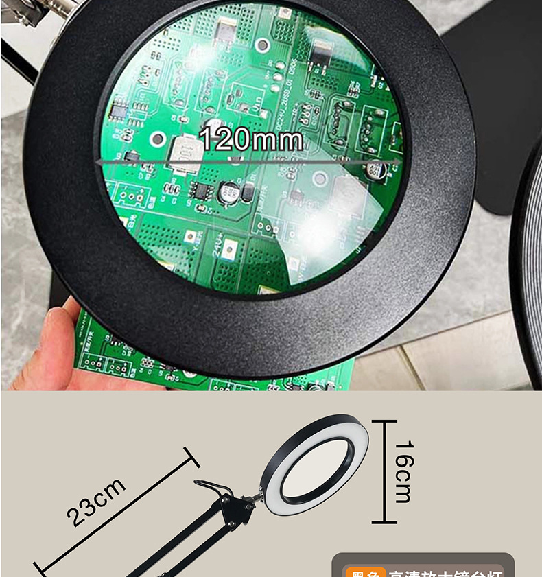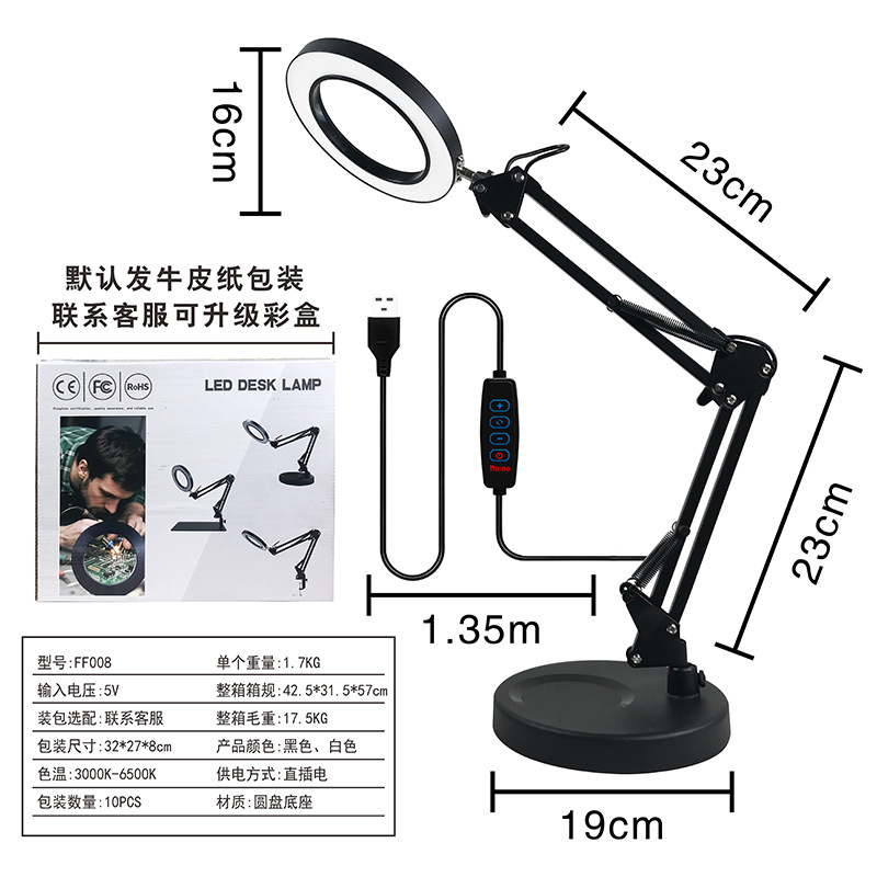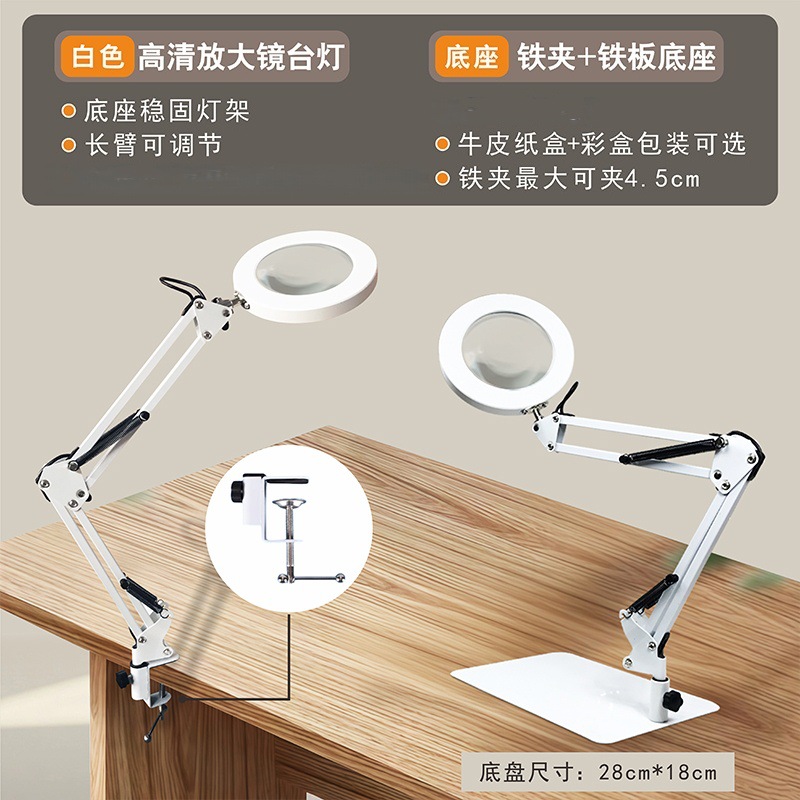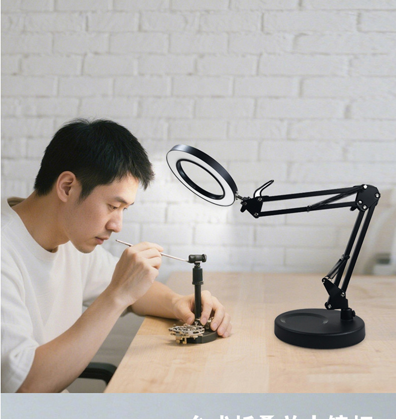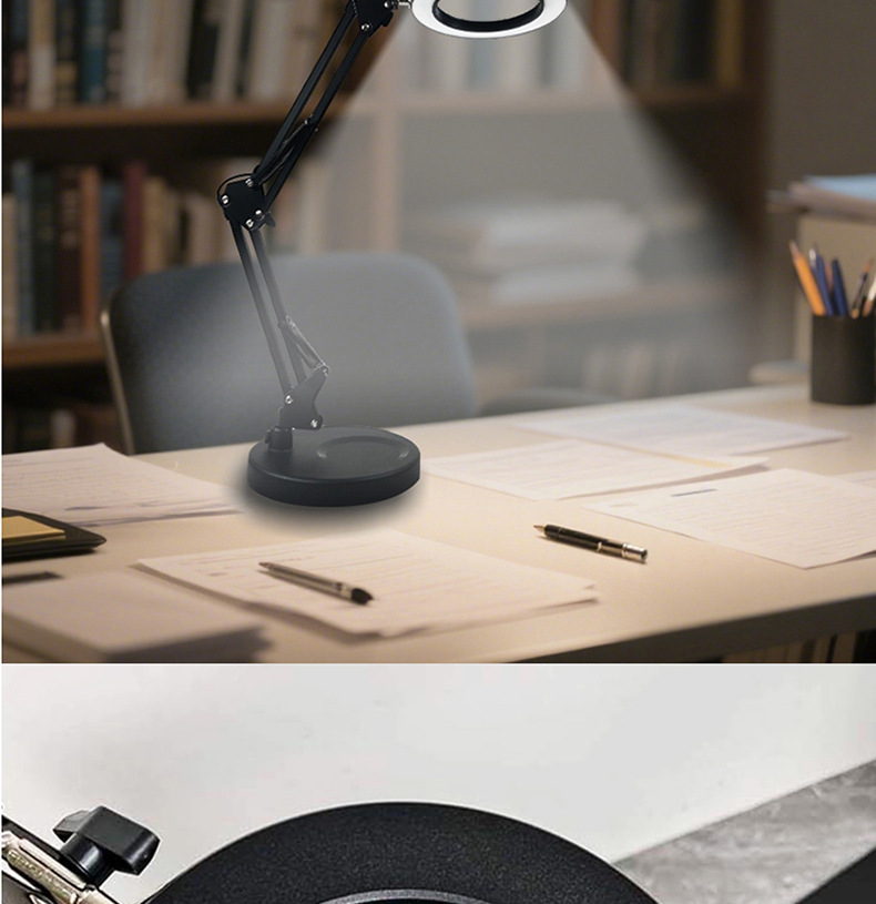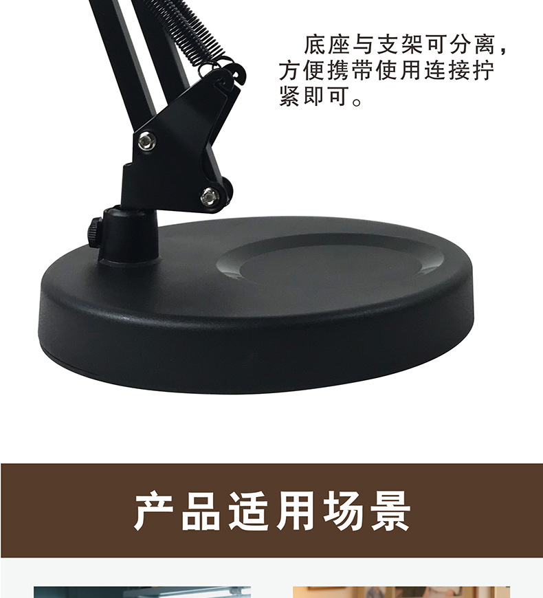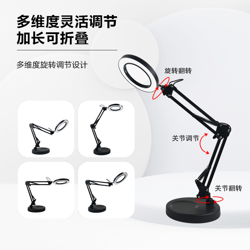 护眼阅读学习灯 LED长臂美式台灯焊接鉴定维修工作折叠放大镜台灯