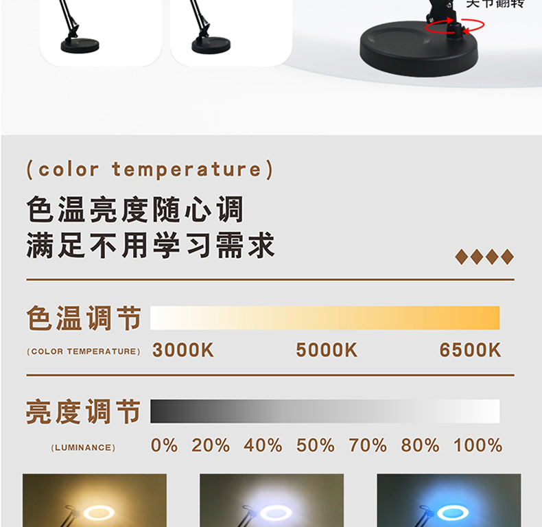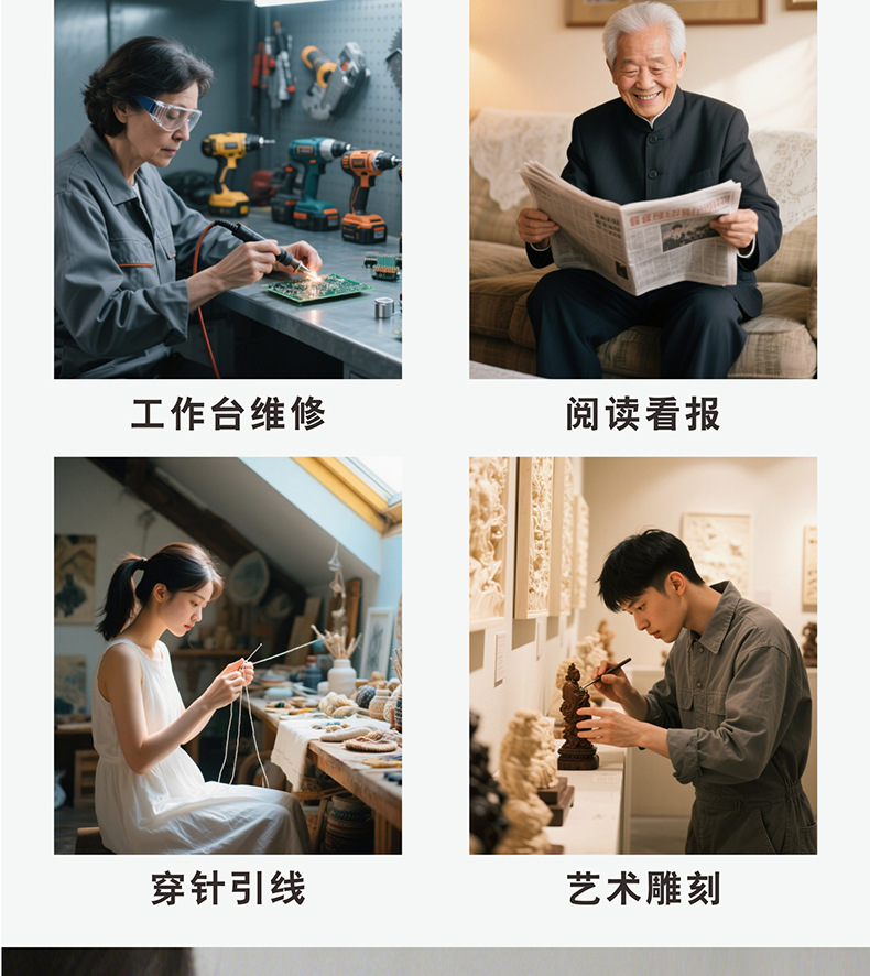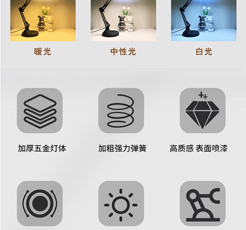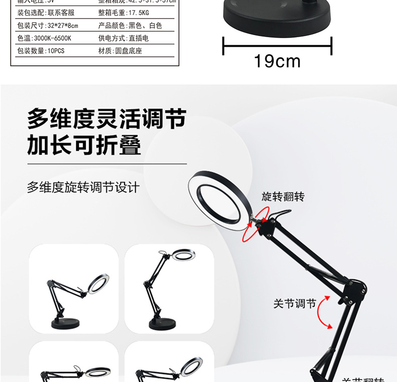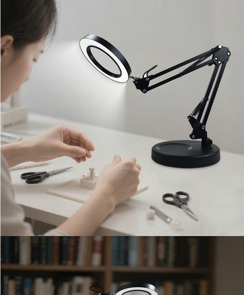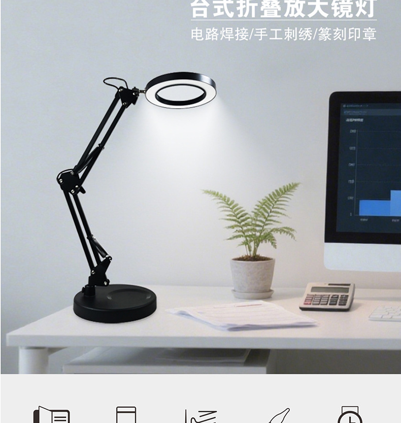 护眼阅读学习灯 LED长臂美式台灯焊接鉴定维修工作折叠放大镜台灯