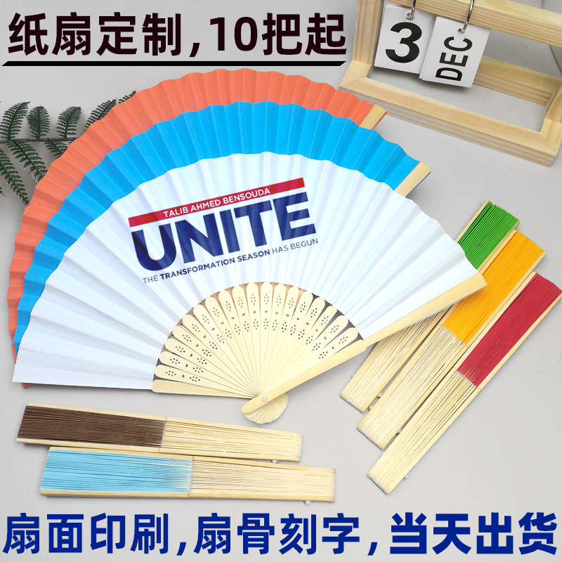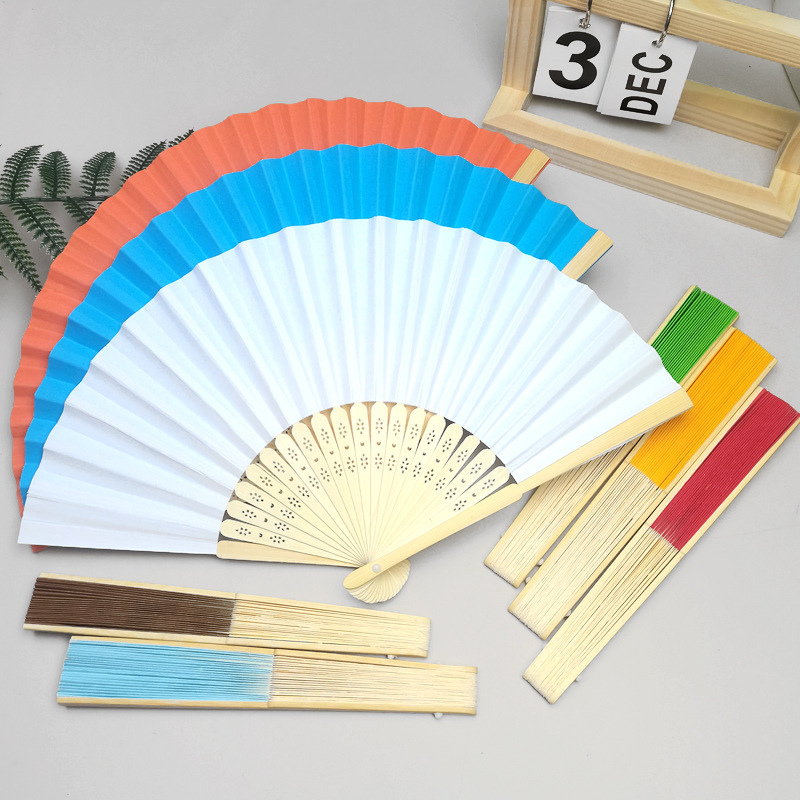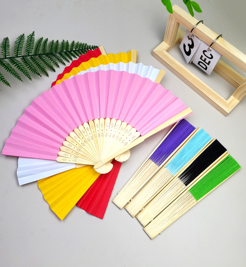 跨境7寸纸扇空白折扇彩色儿童涂鸦DIY手工涂色来图雕刻素面扇子