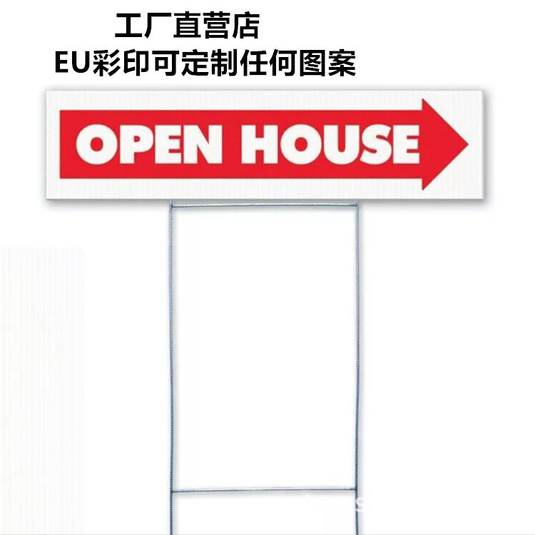 跨境供应中空板广告牌双面全彩uv印刷pp瓦楞板户外庭院防水地插牌