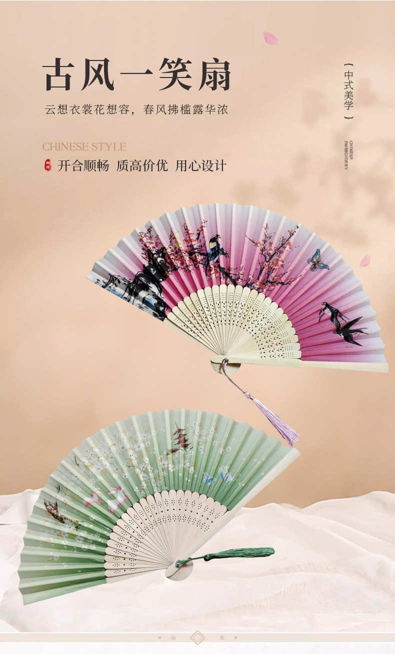 古风一笑扇竹工艺夏季随身扇景区纪念扇舞蹈扇折扇广告扇批发