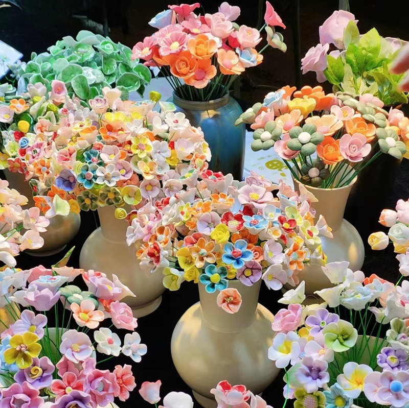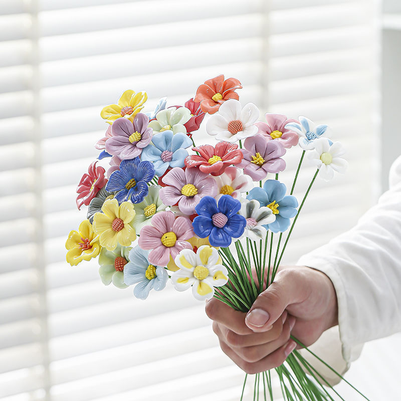 景德镇陶瓷花桌面摆件永生花束创意装饰品接跨境代贴标仿真陶瓷花