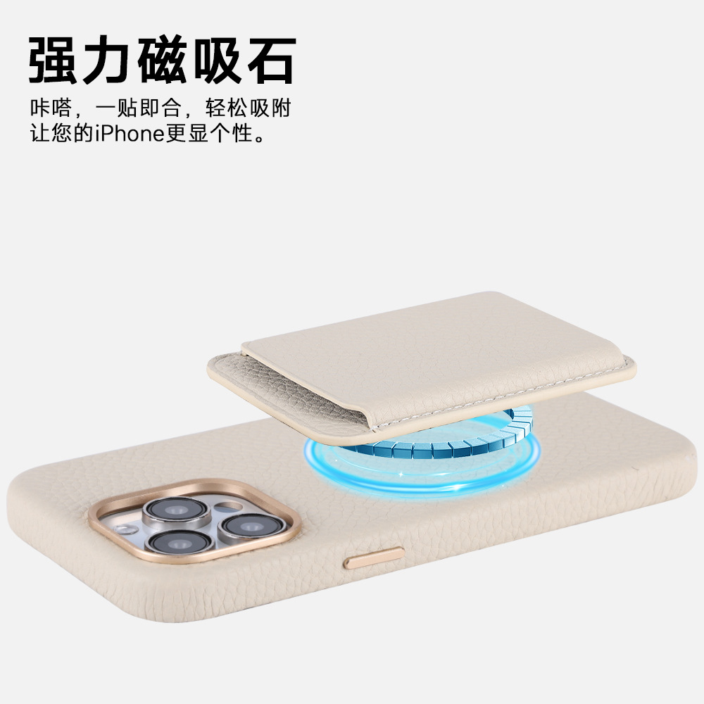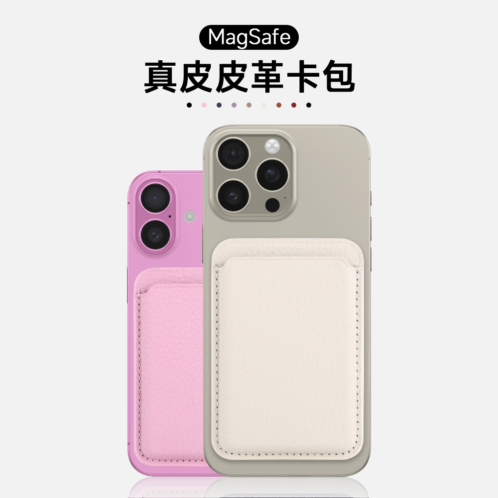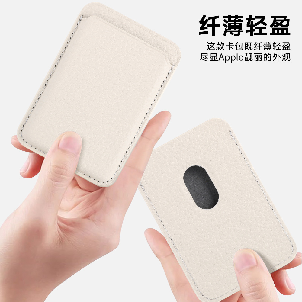 荔枝纹真皮磁吸卡包适用苹果17Pro手机壳车线油边MagSafe卡包外贸