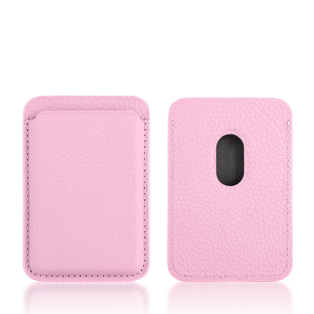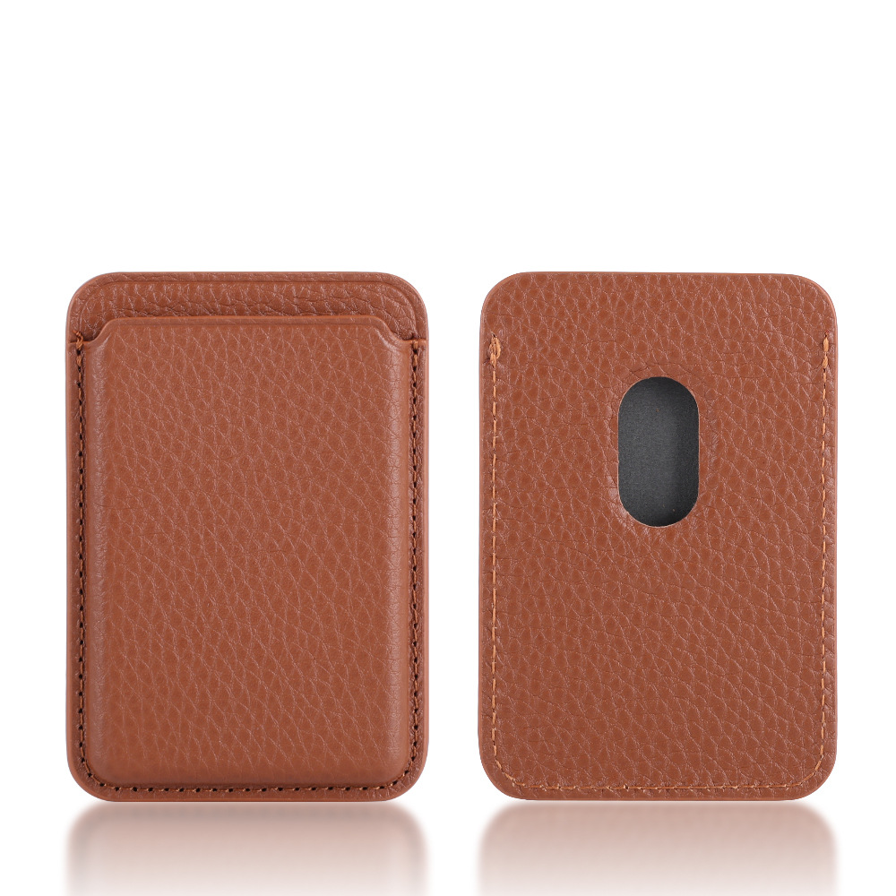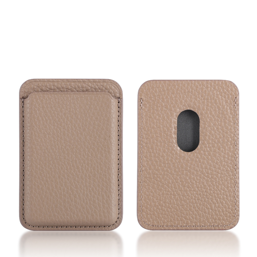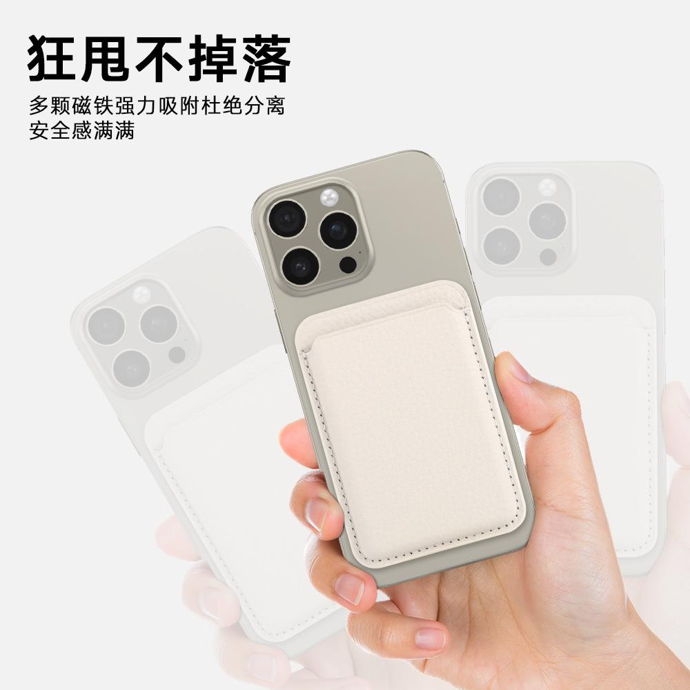 荔枝纹真皮磁吸卡包适用苹果17Pro手机壳车线油边MagSafe卡包外贸
