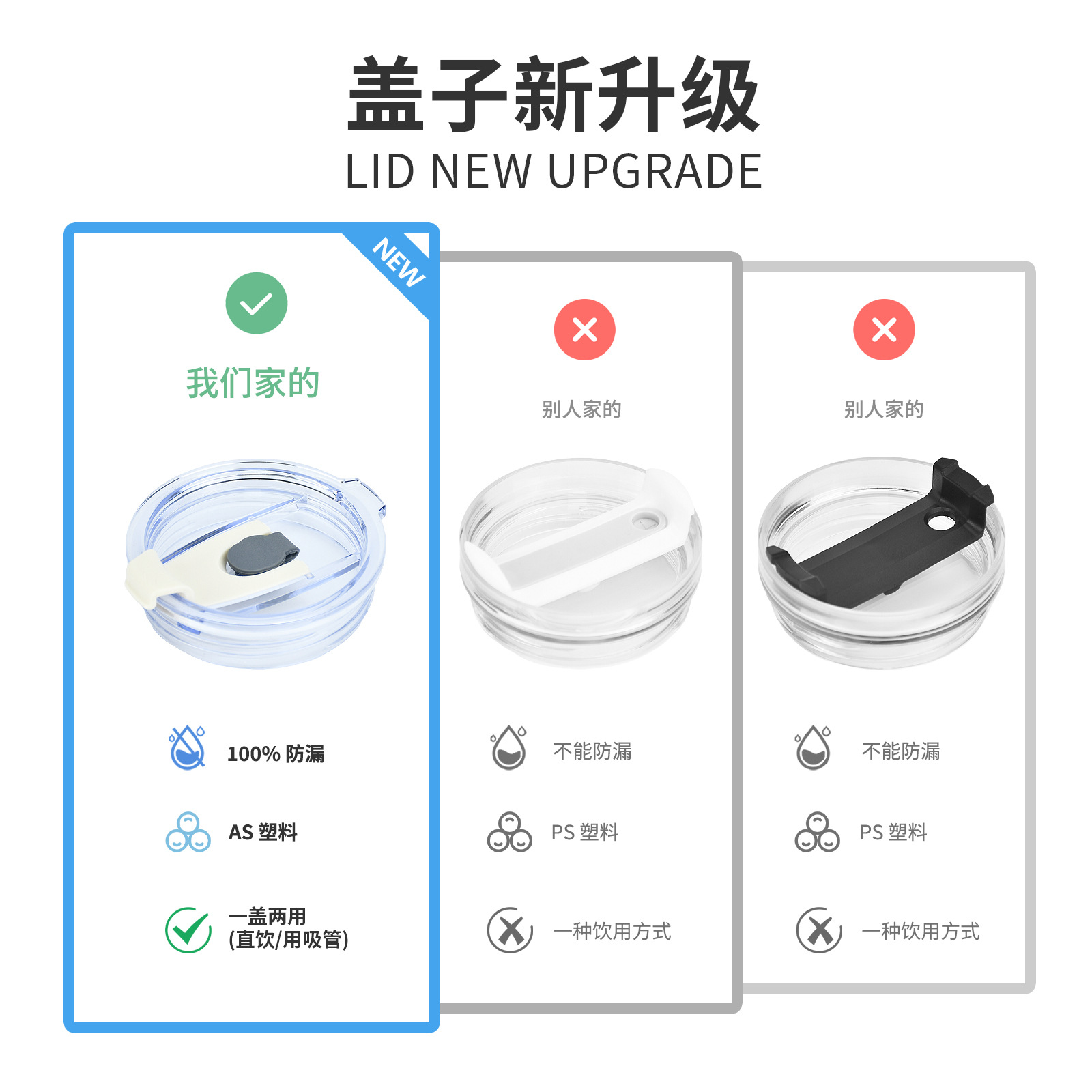 跨境40冰霸杯杯盖stanly专用AS塑料密封盖防漏吸管盖汽车杯盖子