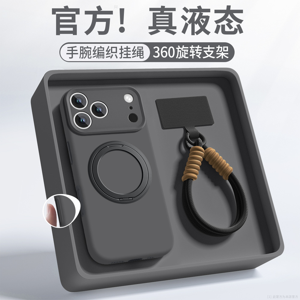 手机挂绳适用iPhone17手机壳全包液态硅胶苹果16旋转支架防摔软套