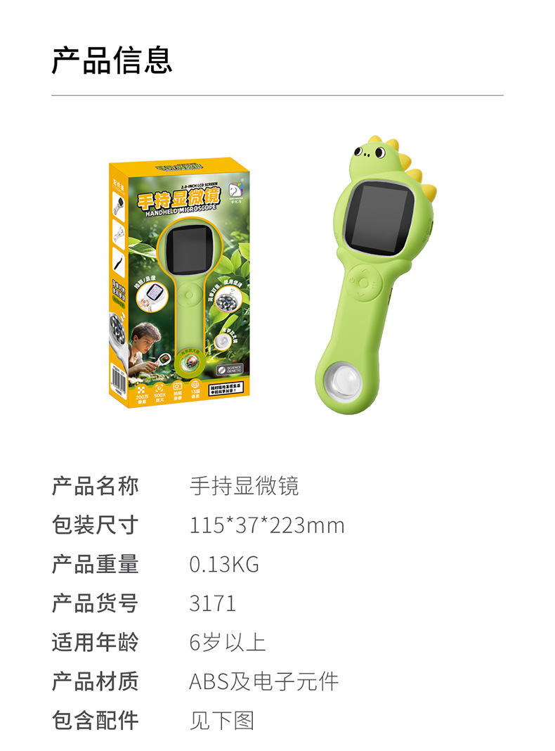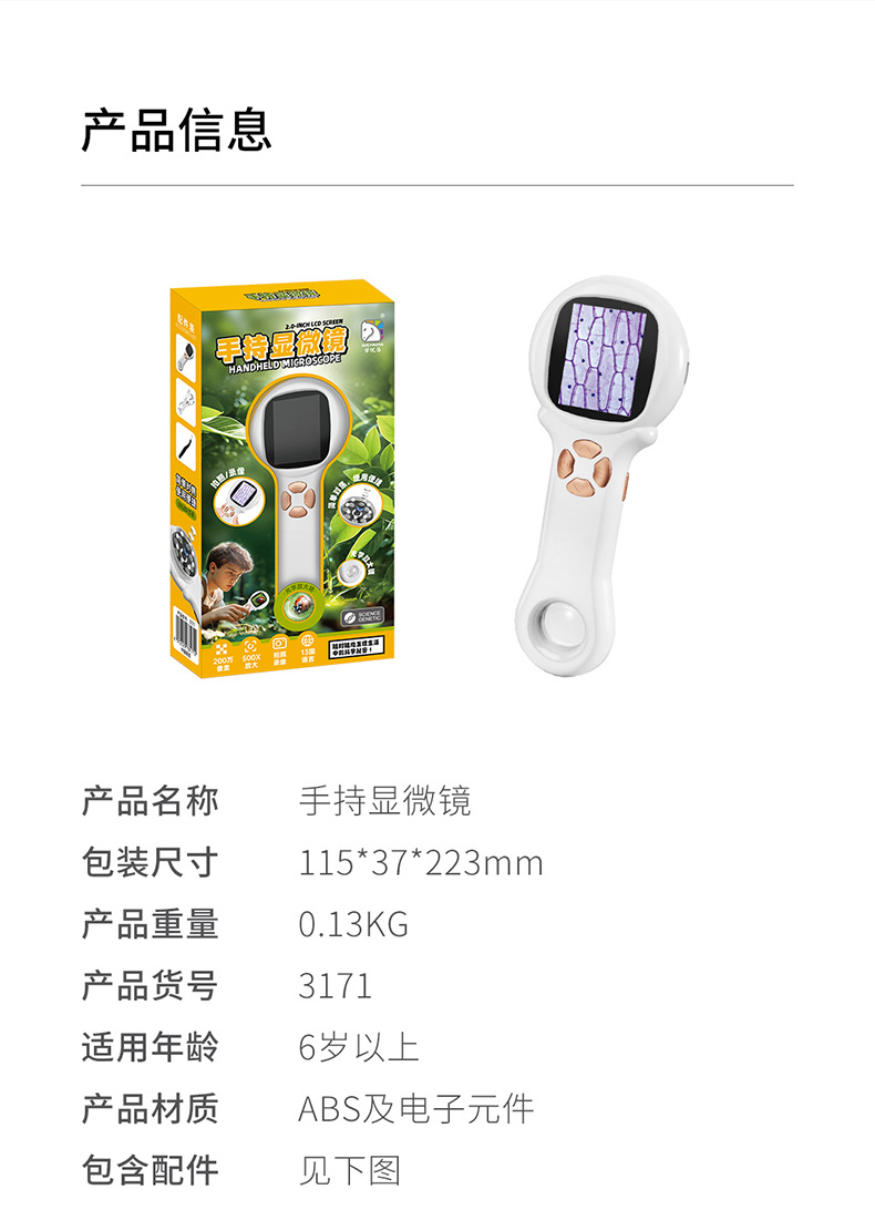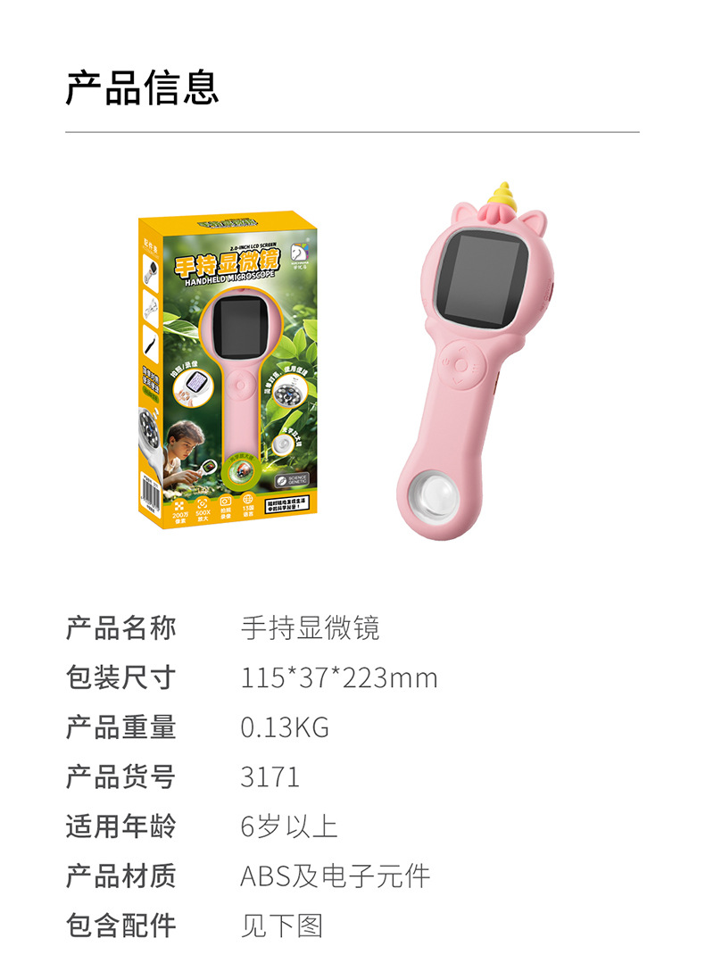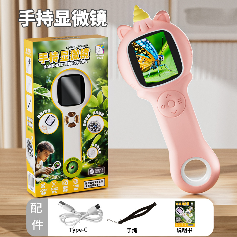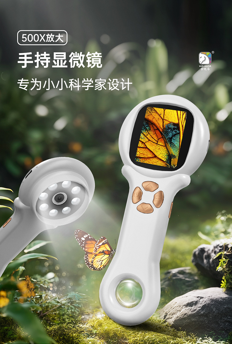 学优马带屏幕儿童显微镜实验套装探索自然多功能科教玩具显微镜