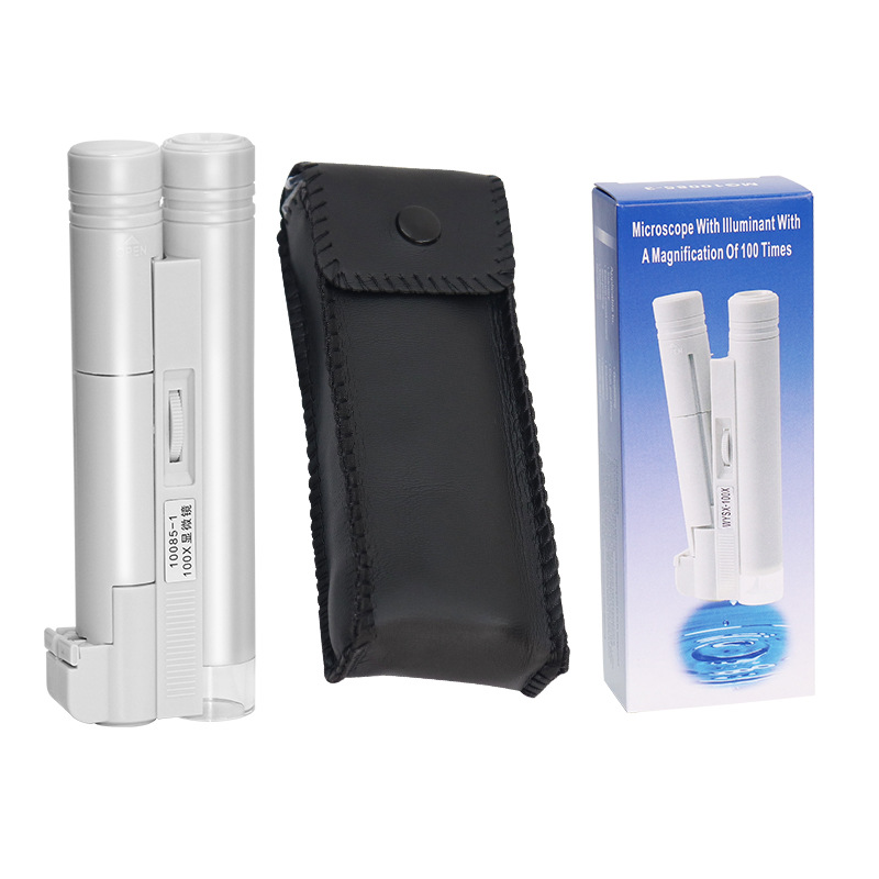 便携手持式放大镜100X倍带LED灯 高倍印刷网点古玩瓷器刻度显微镜