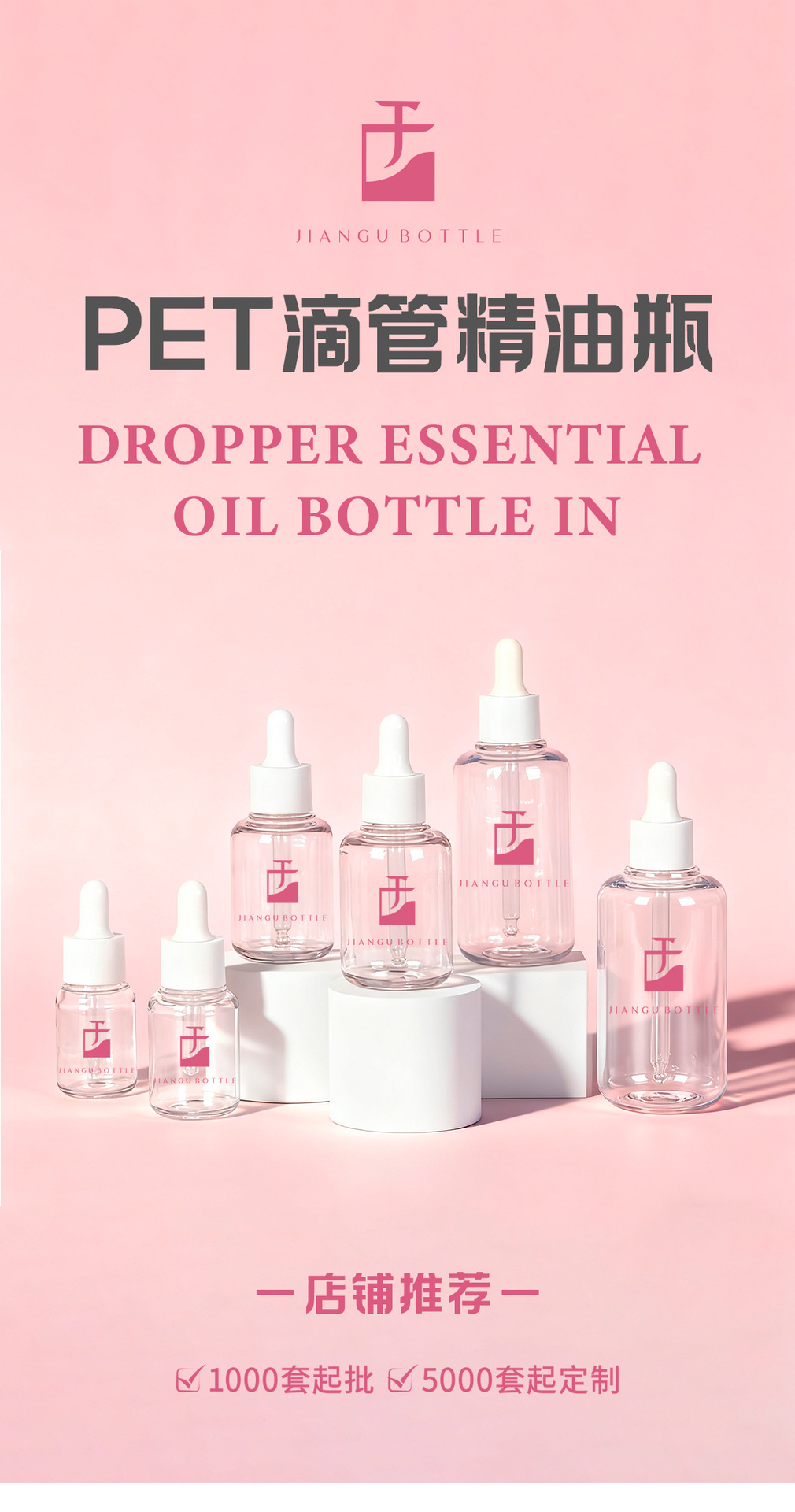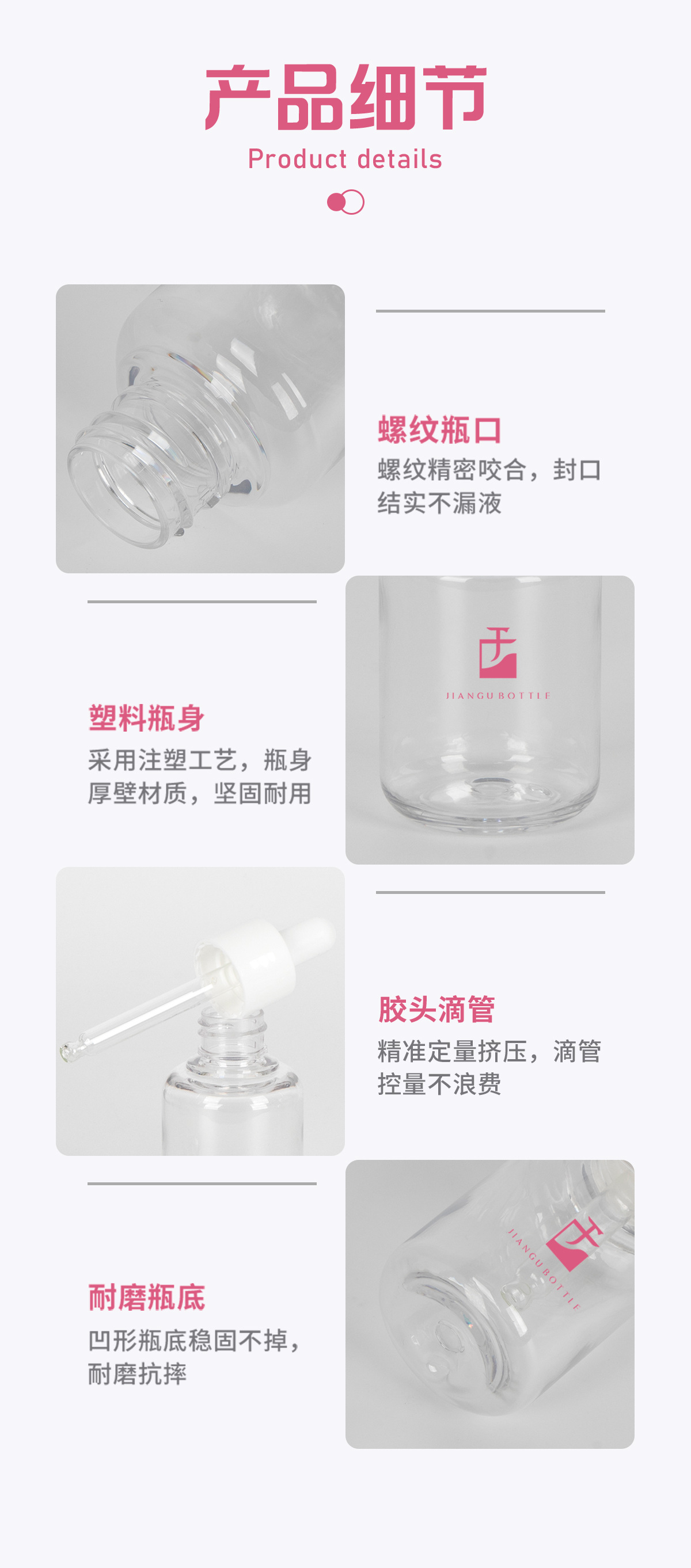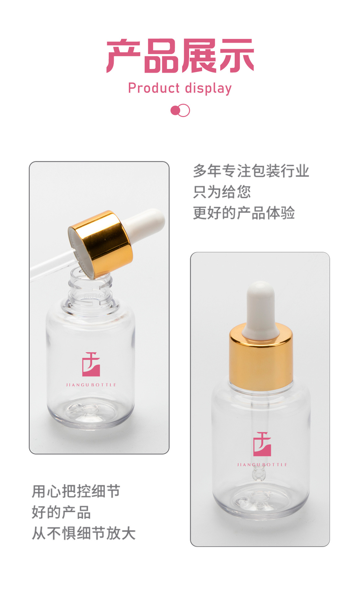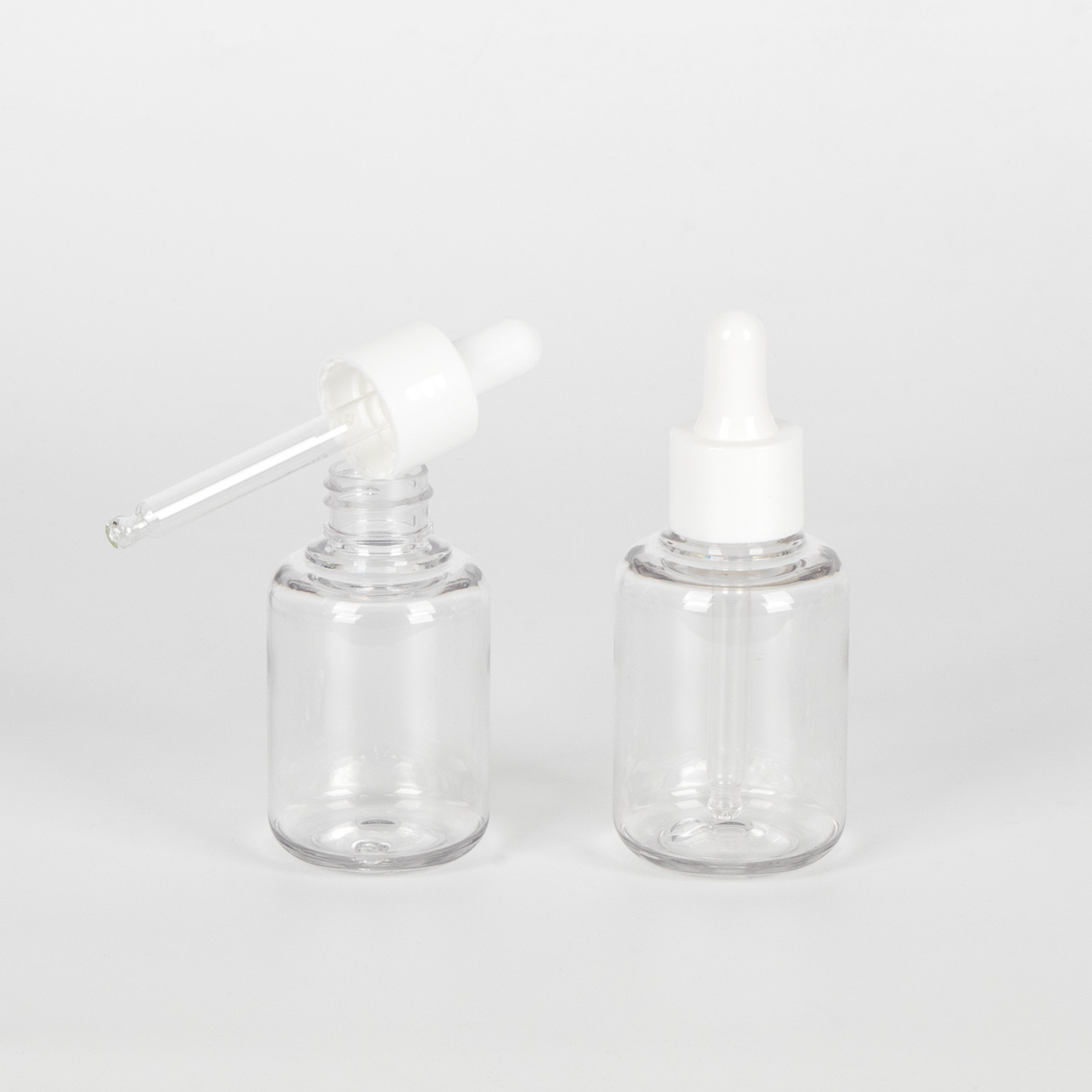 工厂现货小容量精华瓶30ml透明pet塑料精油瓶厚壁胶头滴管分装瓶