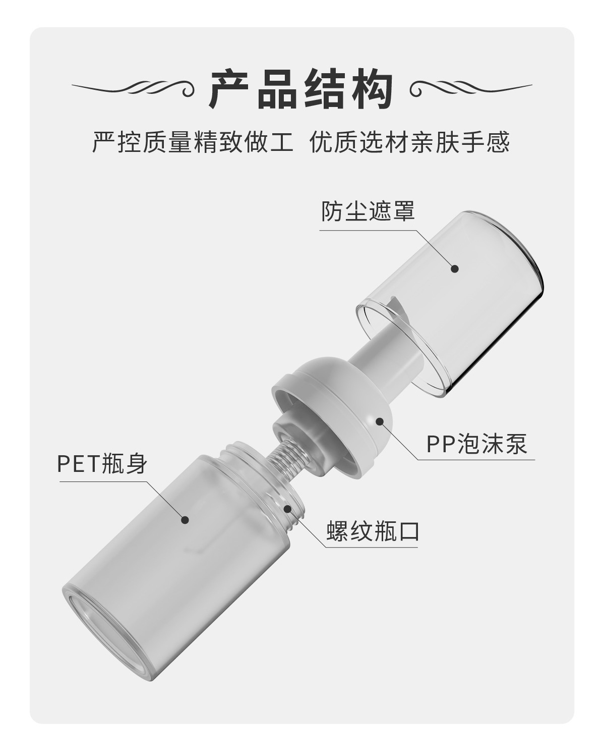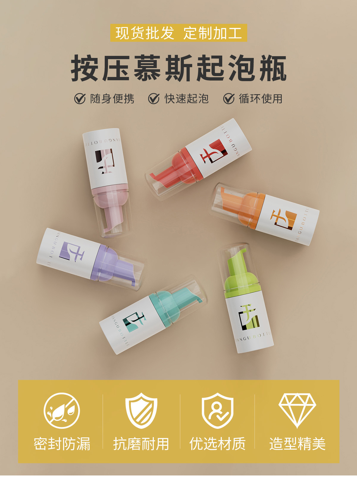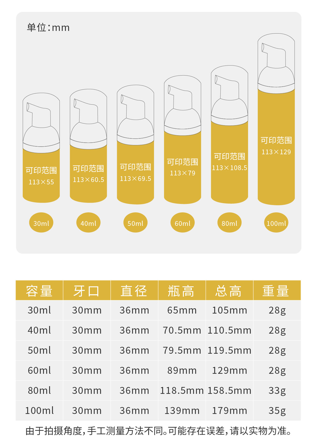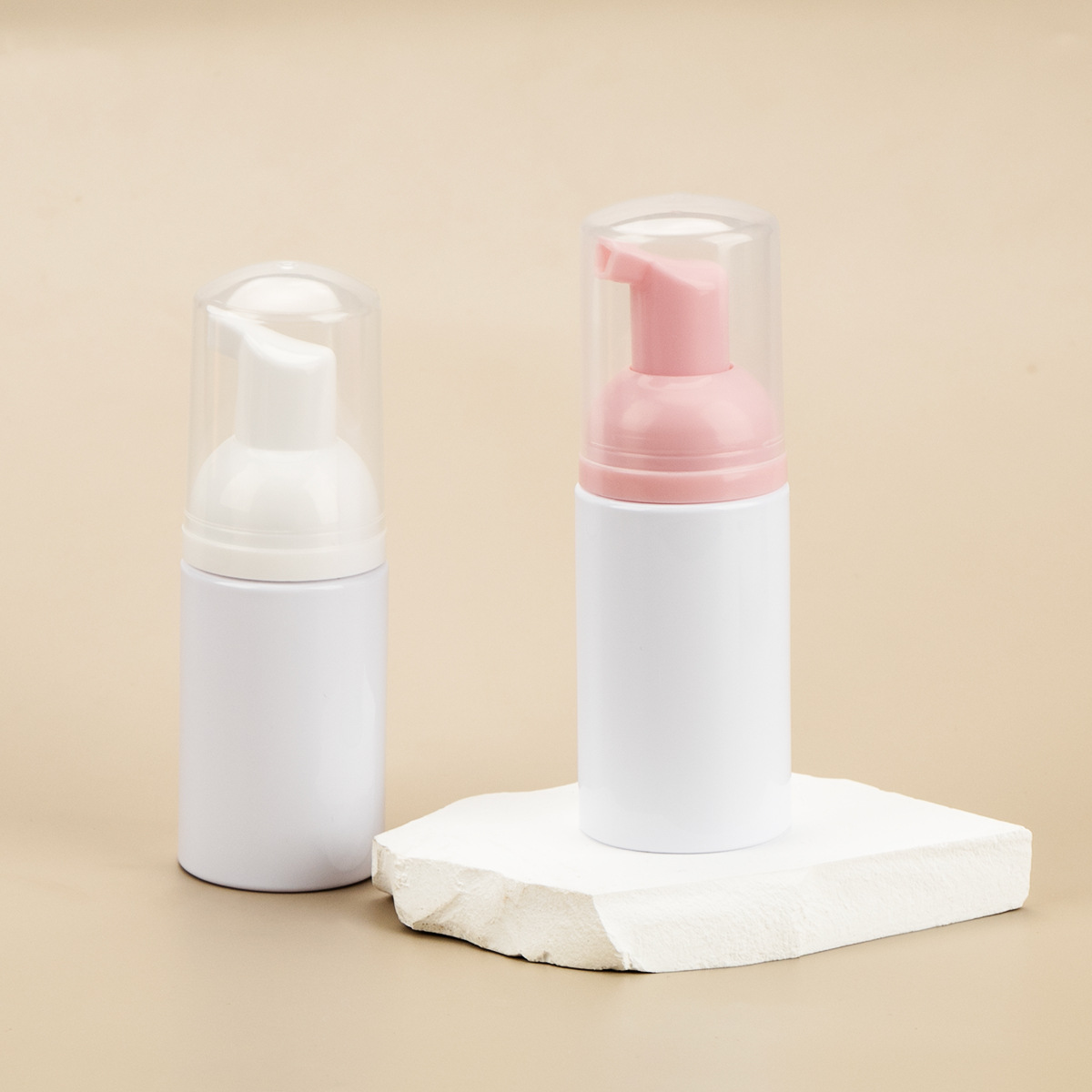 便携按压泡沫慕斯瓶100ml白色pet塑料瓶子30牙洁面慕斯泡沫瓶定制