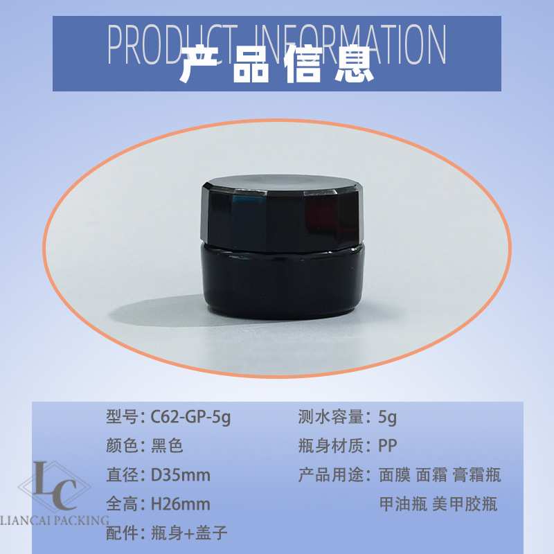现货黑色避光不透光甲油胶分装罐5g眼霜面膜面霜膏霜空瓶子PP塑料
