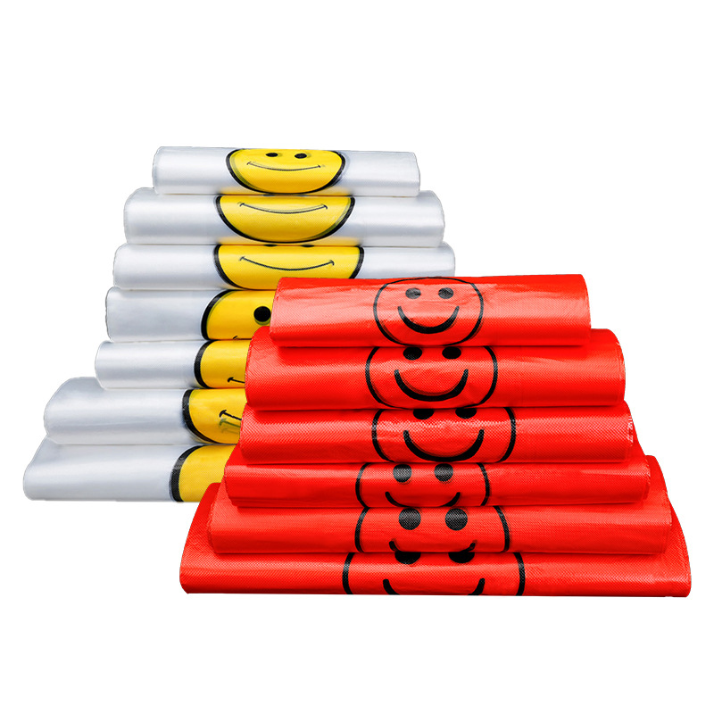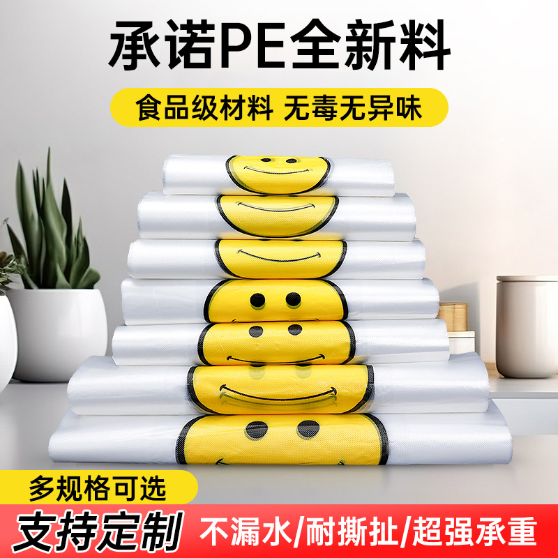 红色笑脸塑料袋子批发方便袋大号购物袋一次性外卖打包食品手提袋