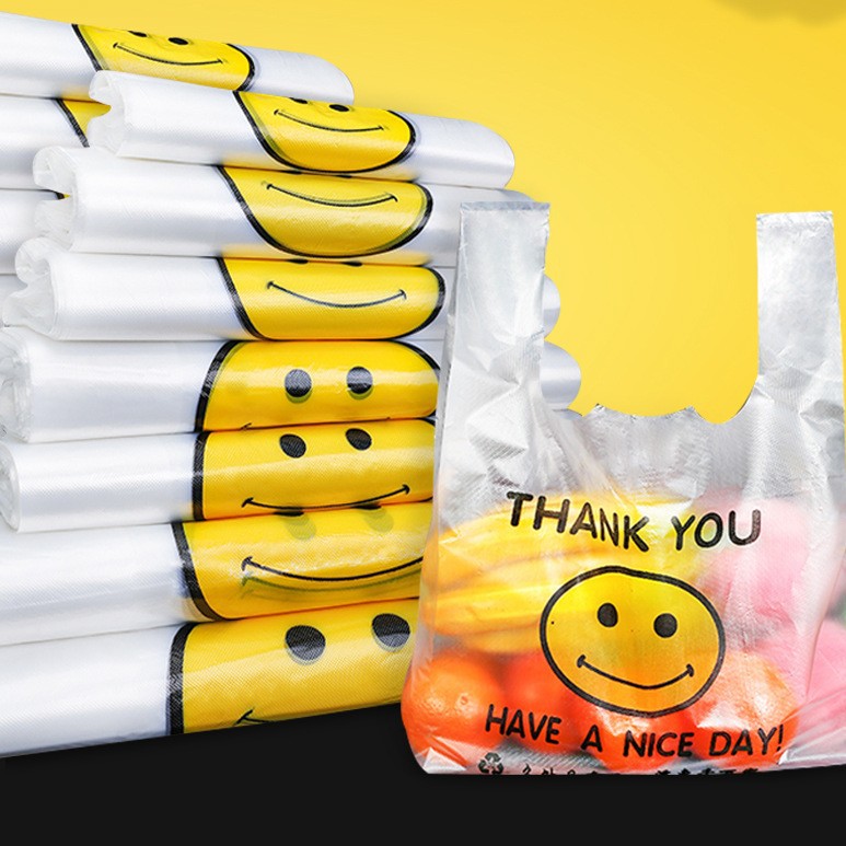 塑料购物一次性袋子批发超市食品方便菜市场打包袋子透明笑脸袋