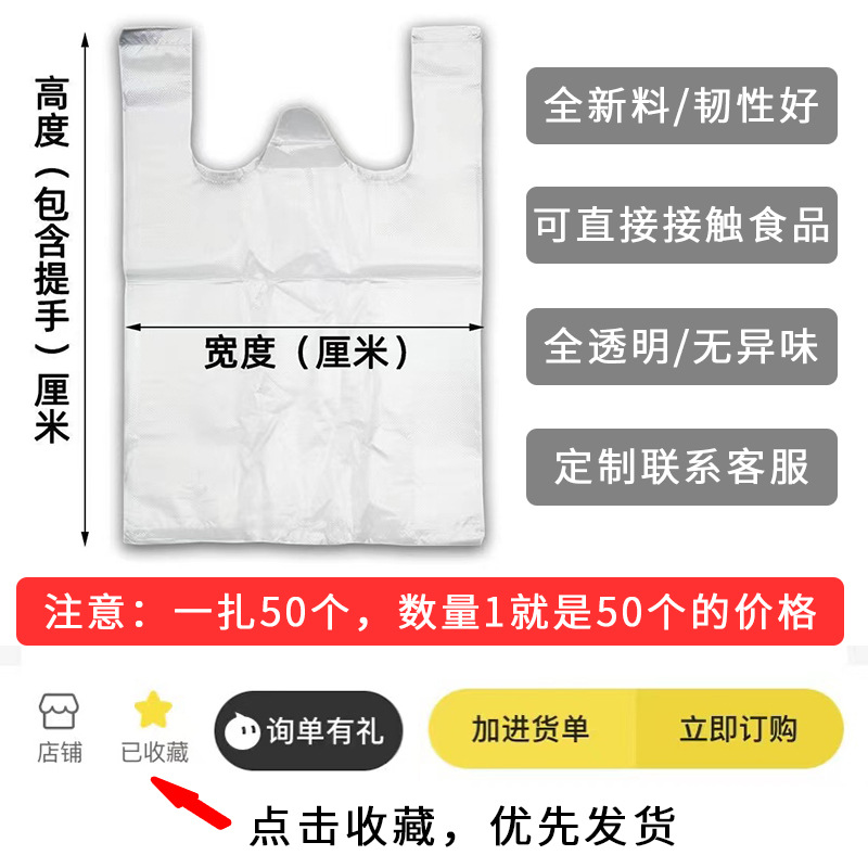 白色塑料袋加厚食品级打包袋超市透明购物袋水果袋外卖手提袋批发