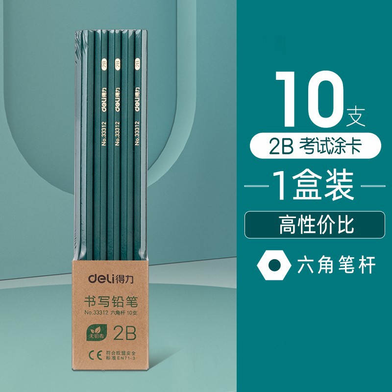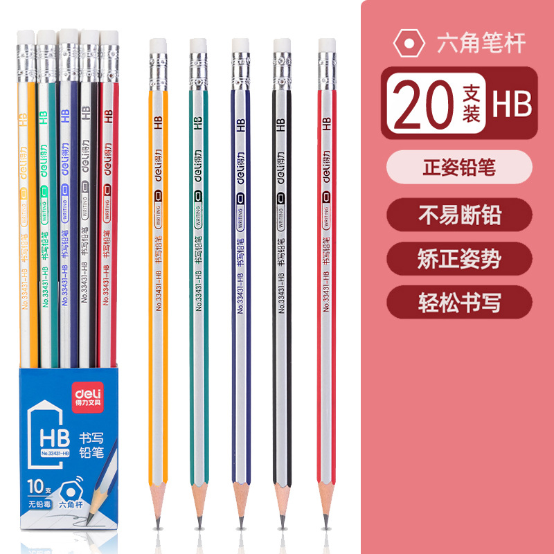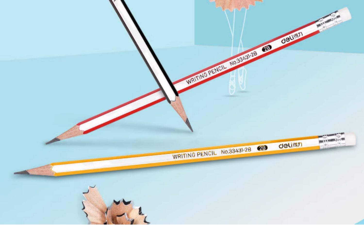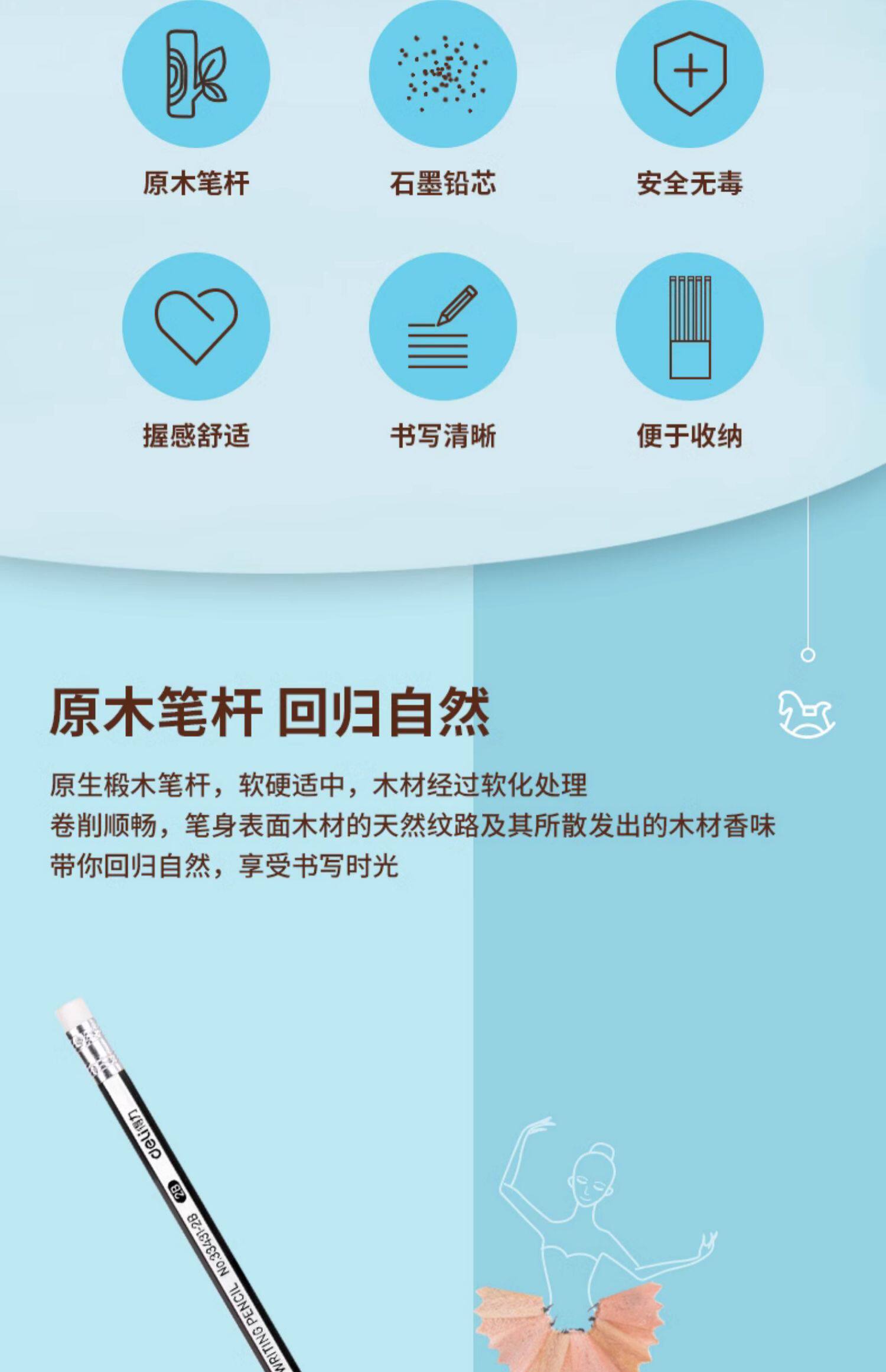 得力铅笔小学生一年级自带橡皮儿童书写hb幼儿园六角杆2B考试铅笔