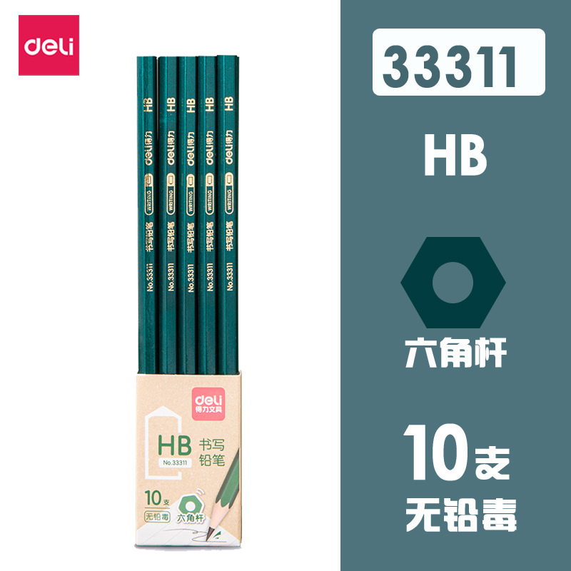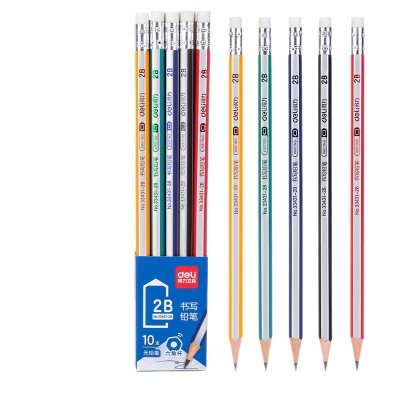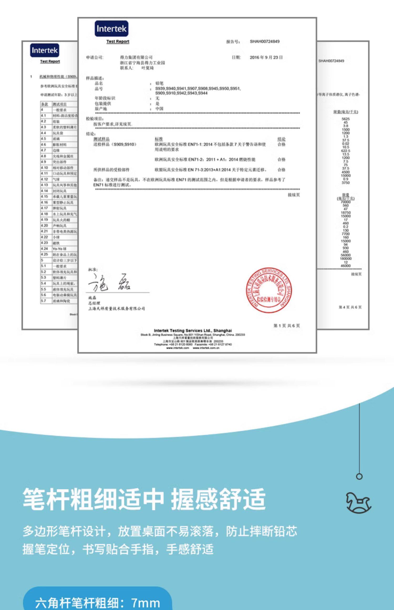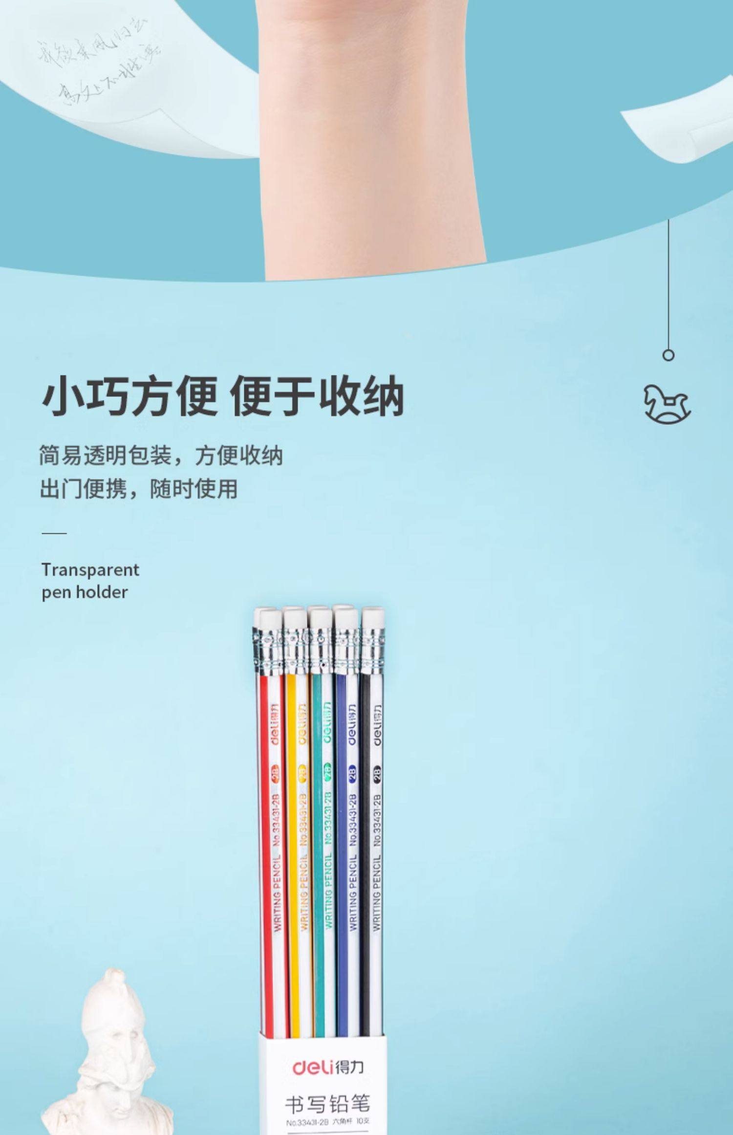 得力铅笔小学生一年级自带橡皮儿童书写hb幼儿园六角杆2B考试铅笔