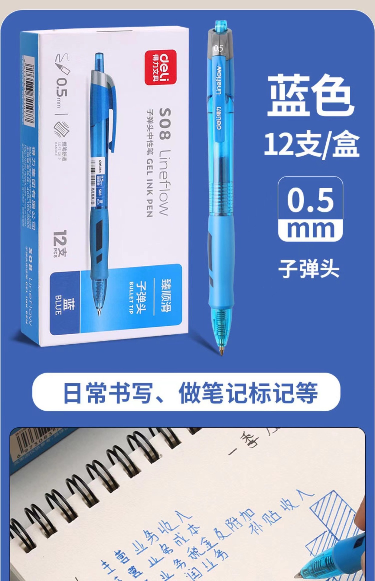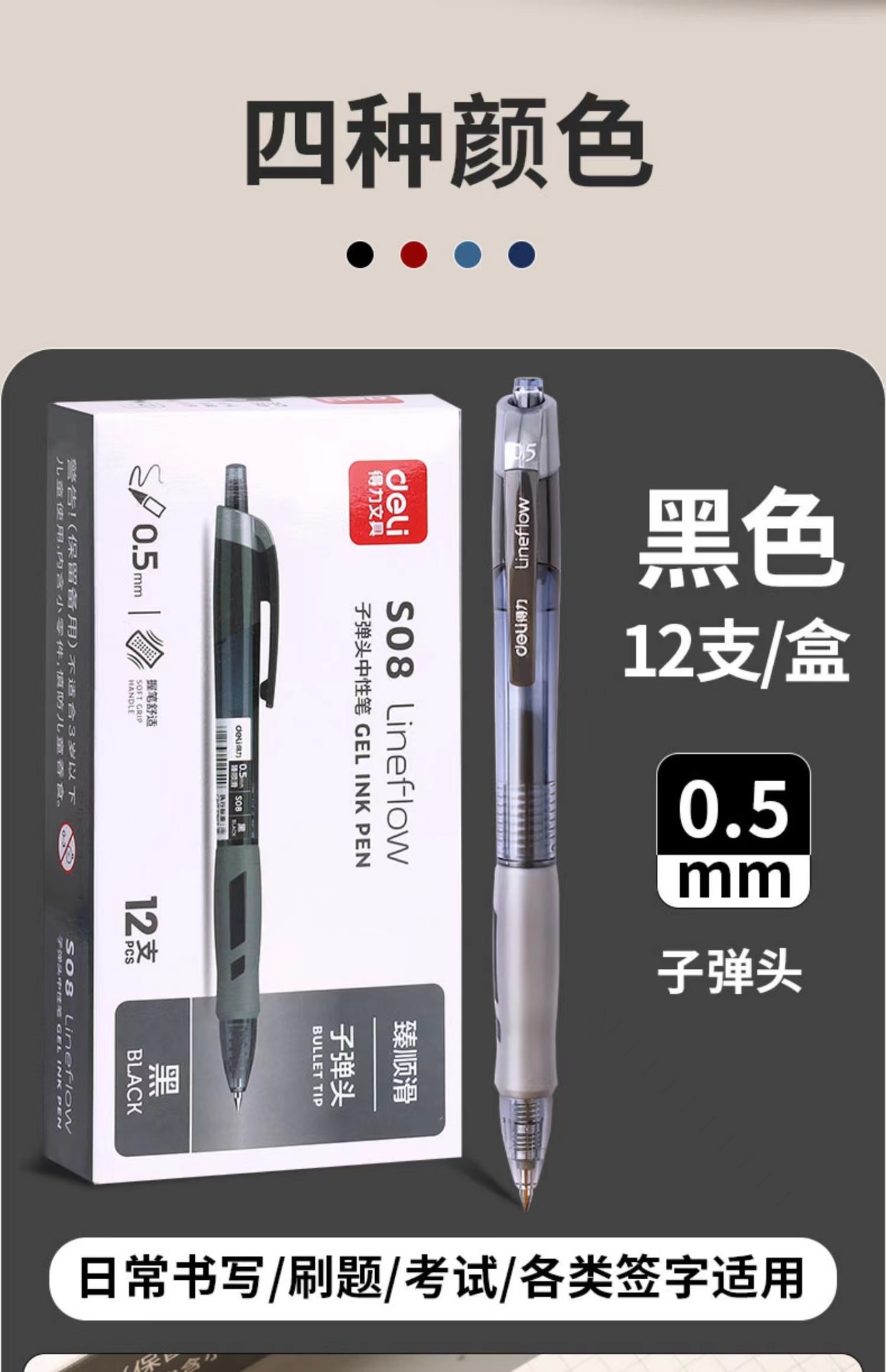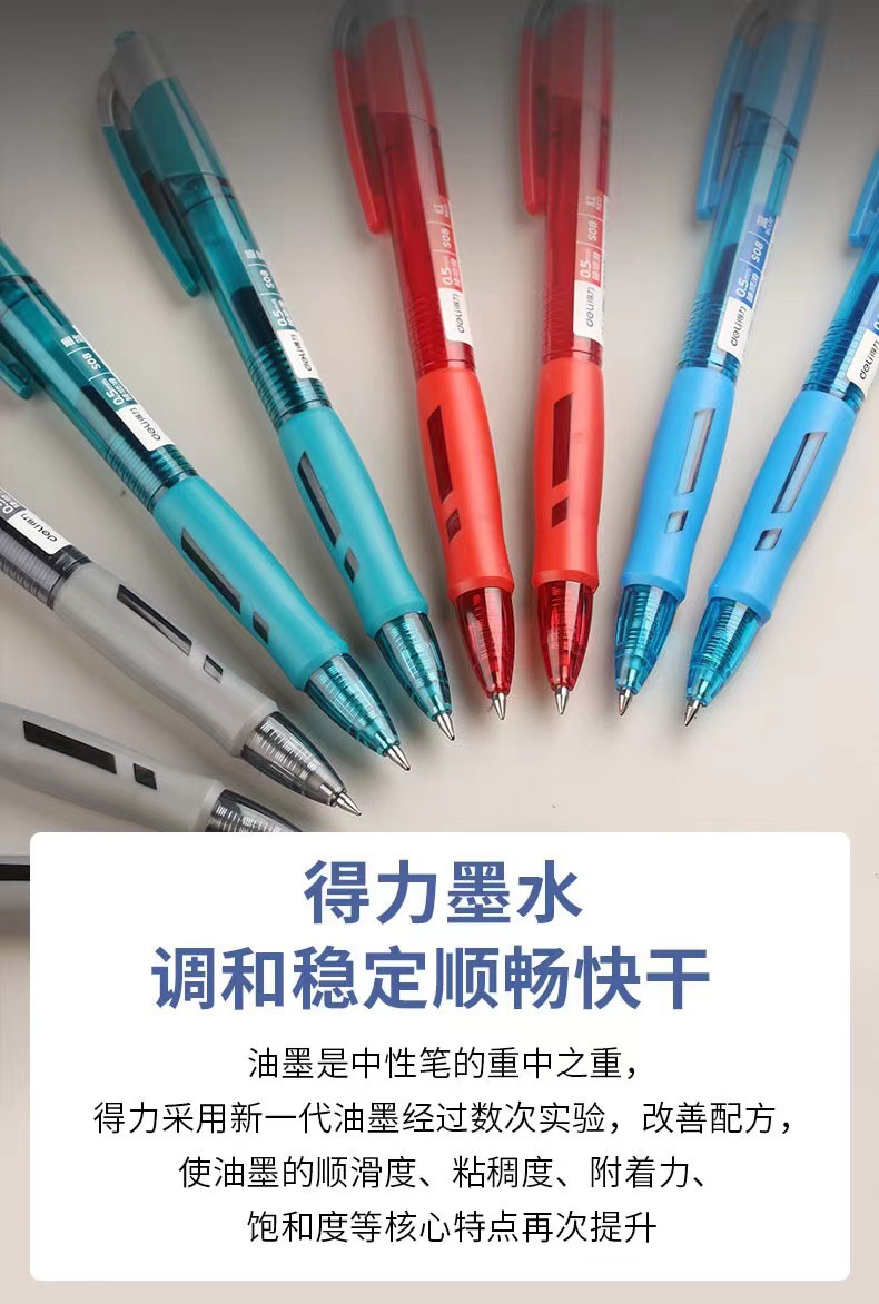 得力S08按动笔中性笔学生考试专用碳素速干水笔0.5签字水笔圆珠笔