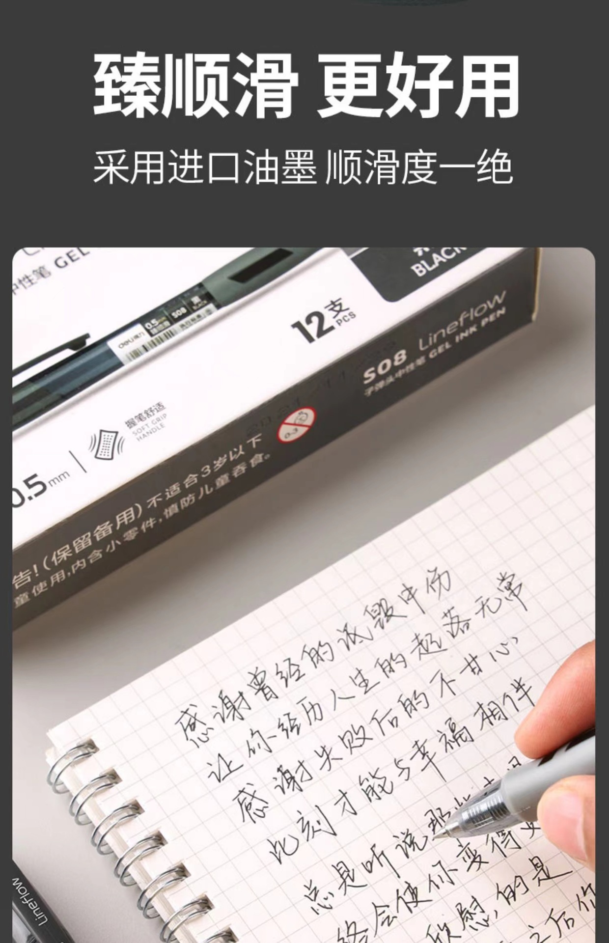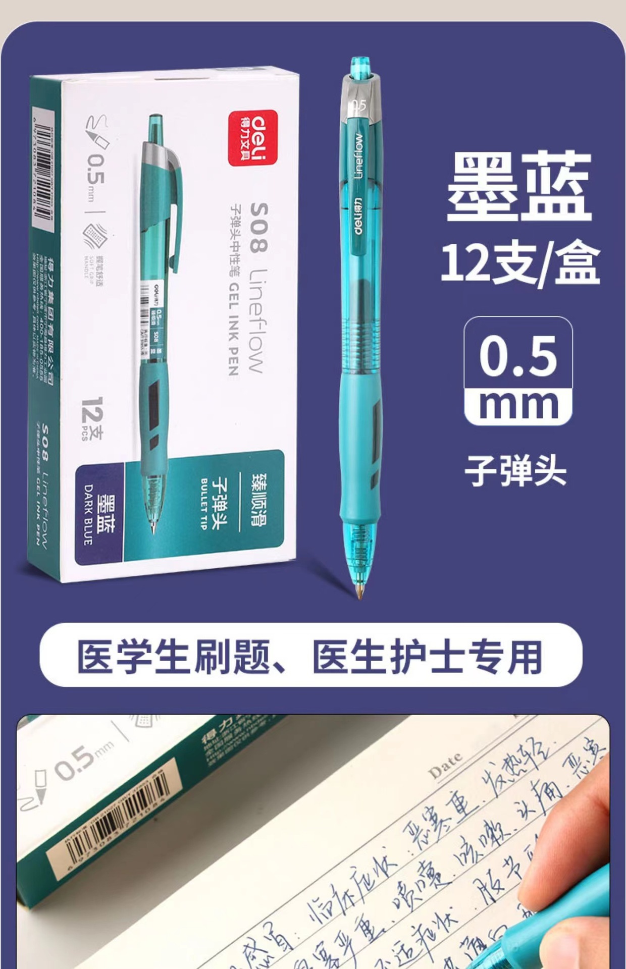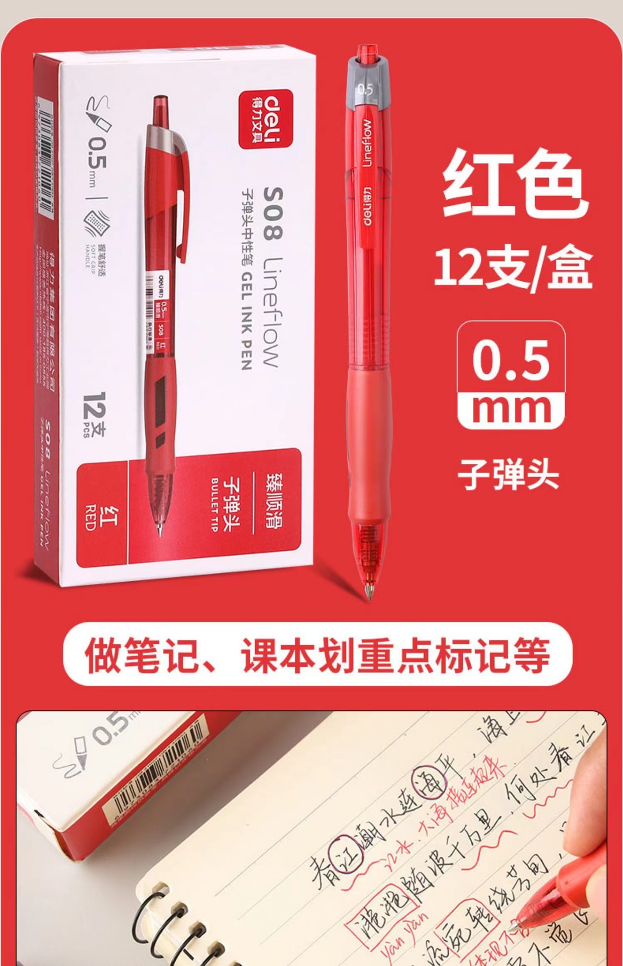 得力S08按动笔中性笔学生考试专用碳素速干水笔0.5签字水笔圆珠笔
