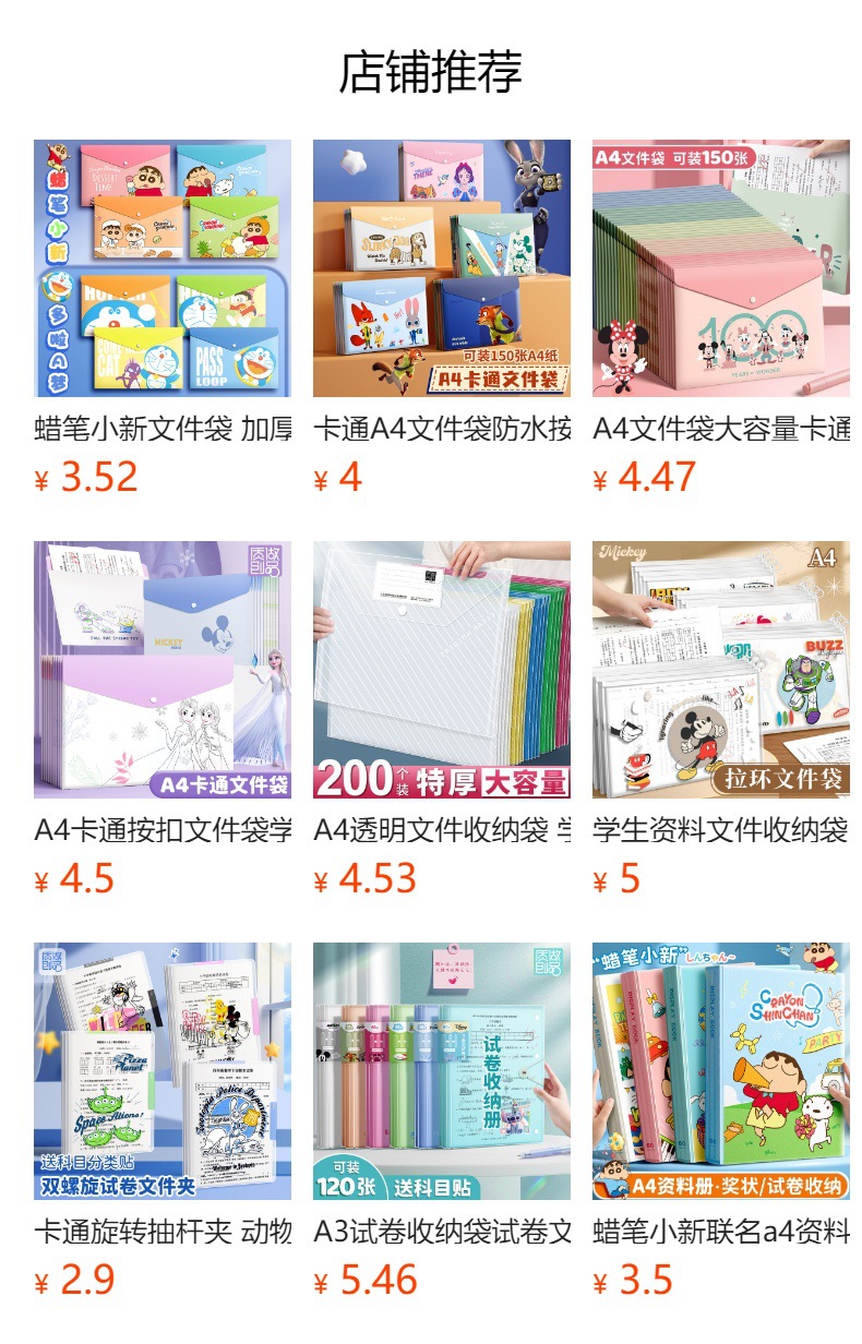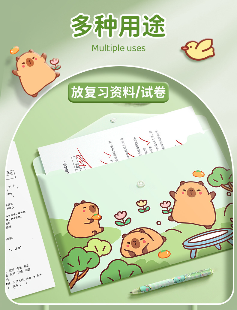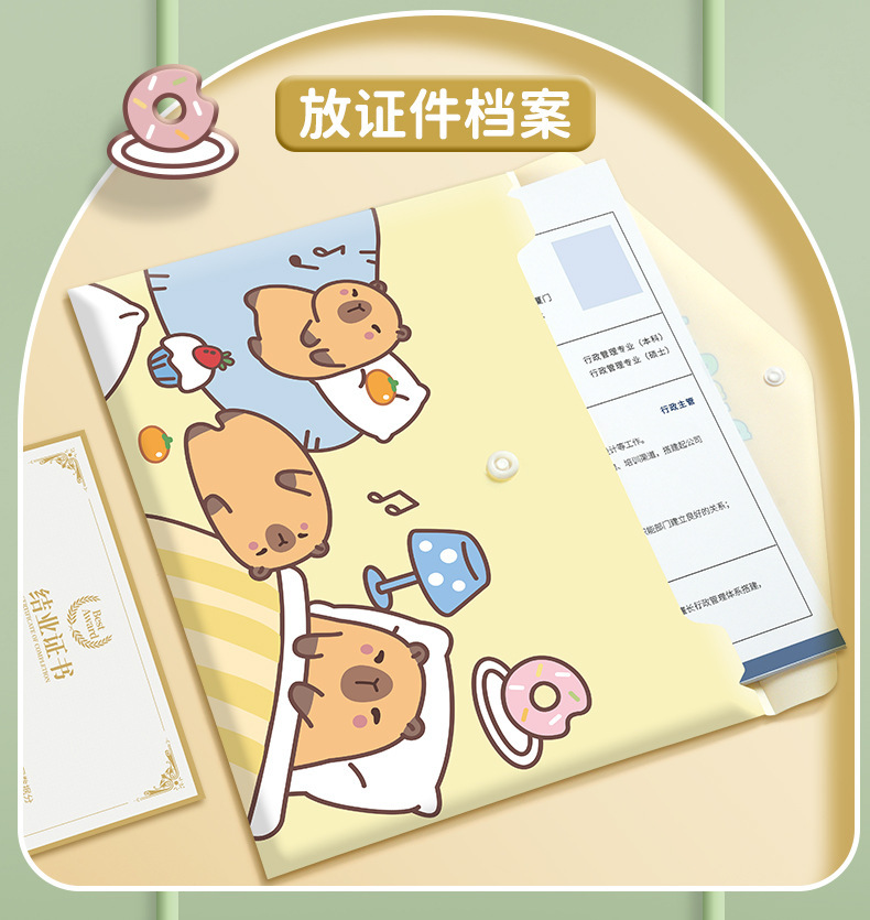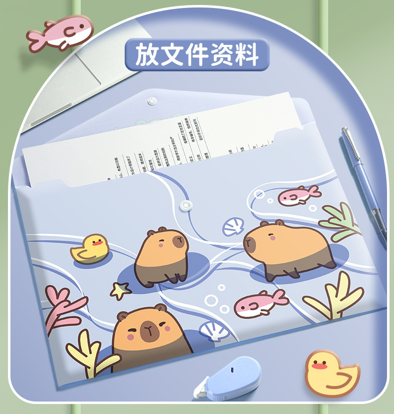 A4大容量卡通文件袋 资料合同收据试卷收纳整理按扣你考试收纳袋