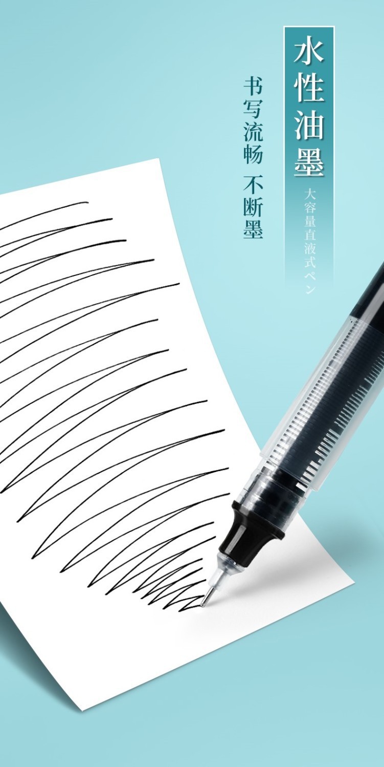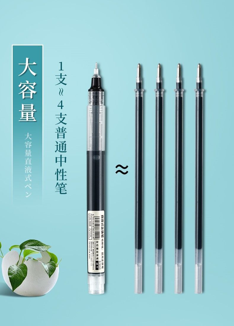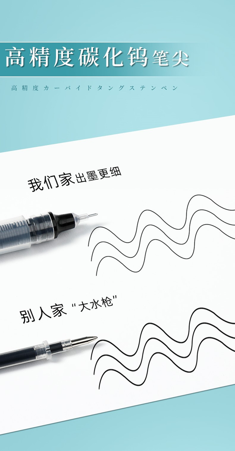 低价直液式速干走珠笔中性笔针管大容量0.5mm办公考试笔黑笔速干