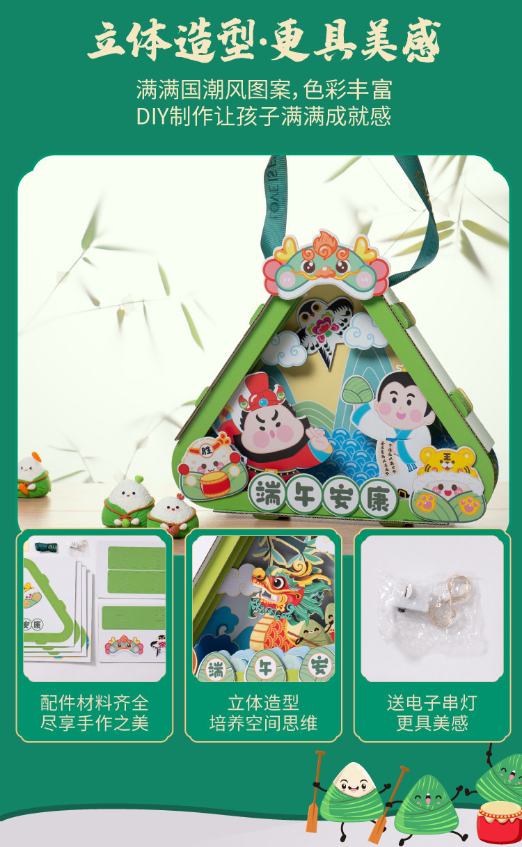 端午节礼物手工diy彩印香粽景深画儿童制作材料包幼儿园玩具批发